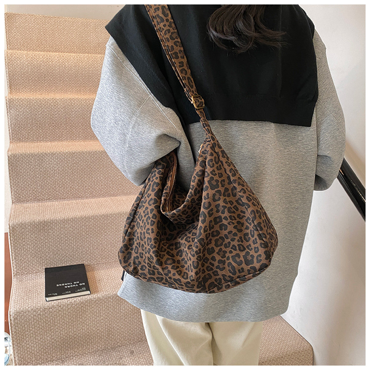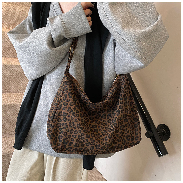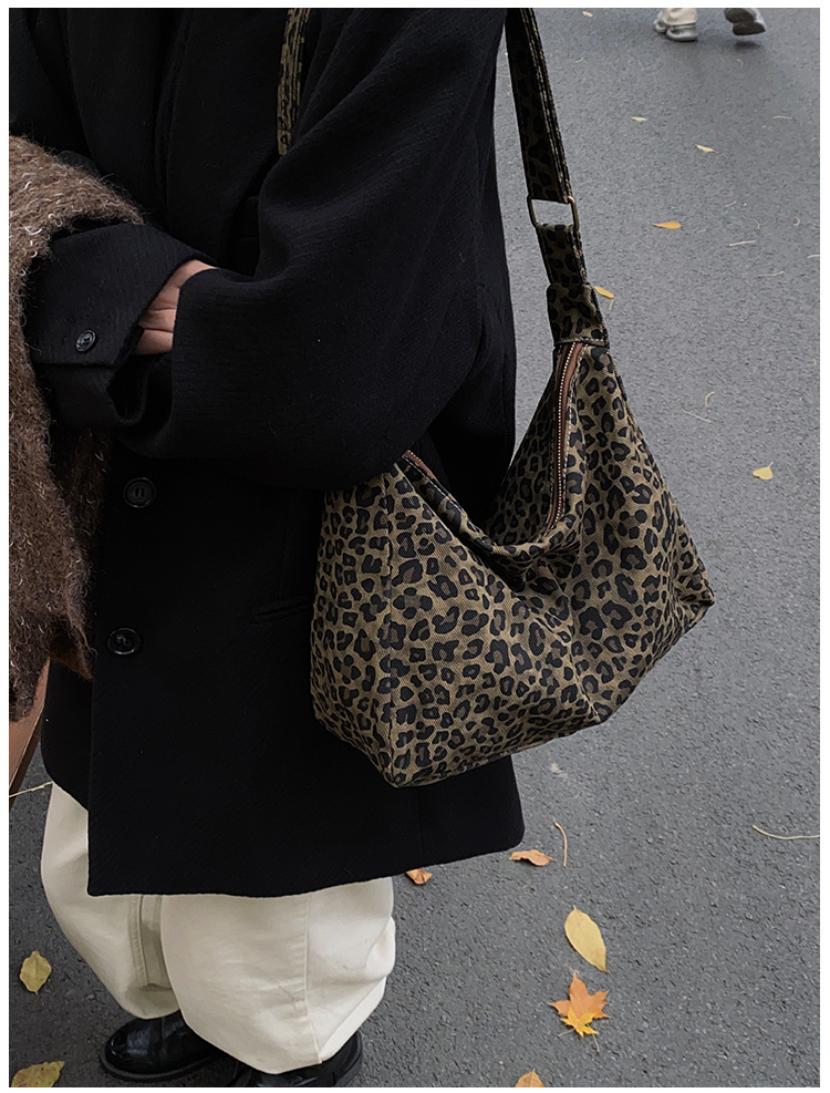 봄 신작 레오파드 프린트 숄더백 여성 유럽과 미국 스타일의 크로스 바디 백 대용량 트렌디 토트 백 통근 겨드랑이 가방스토어 가기