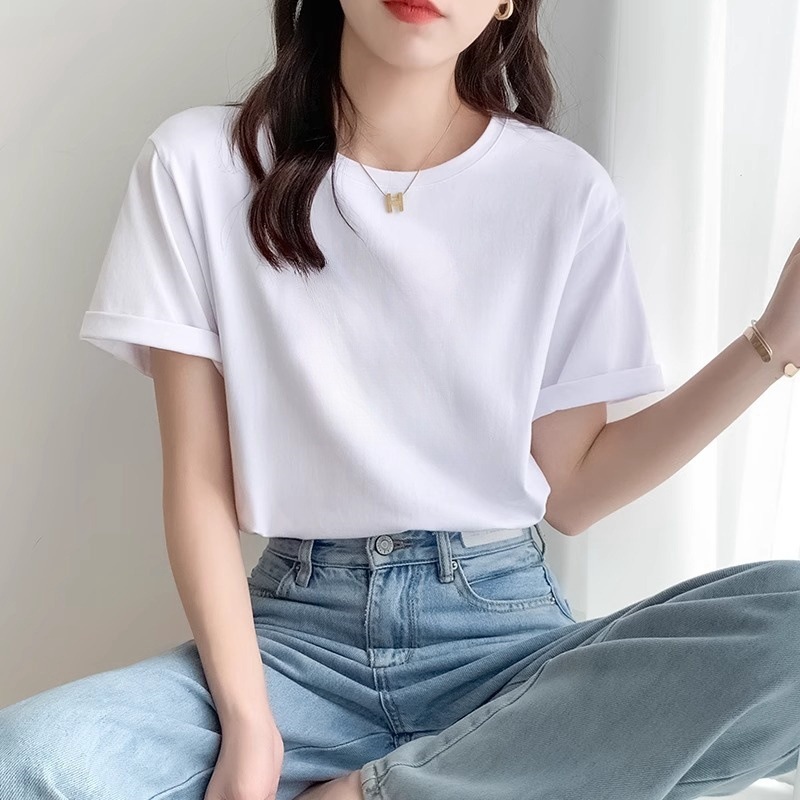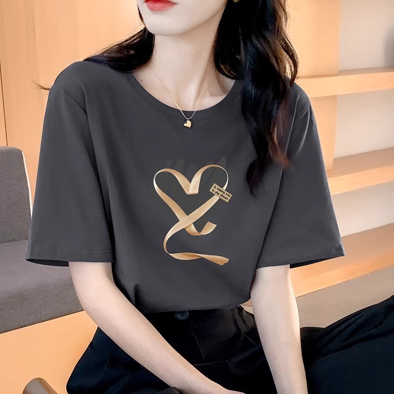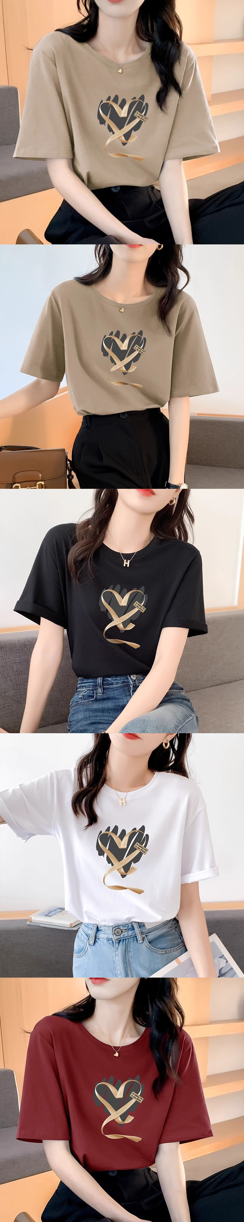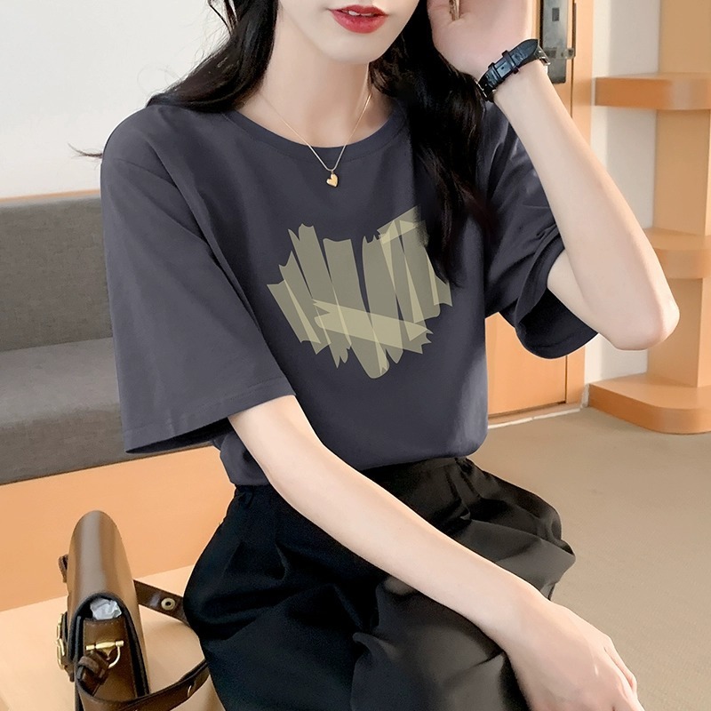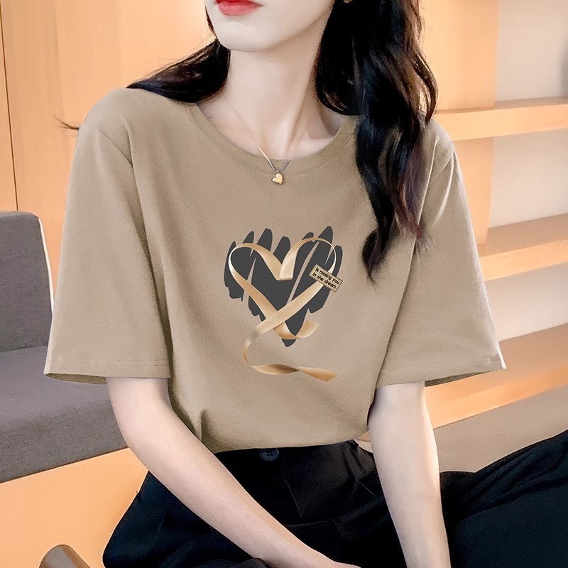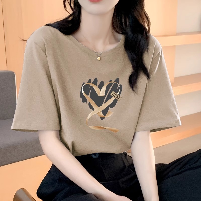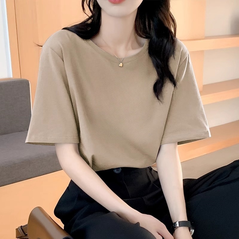 카키 2025 여름 새 면 반팔 어깨 티셔츠 여성용 반소매 탑 티셔츠 유행 유행 유행 작은 셔츠스토어 가기