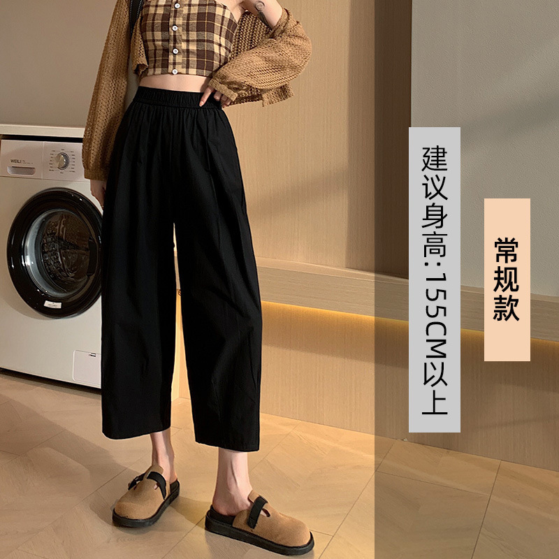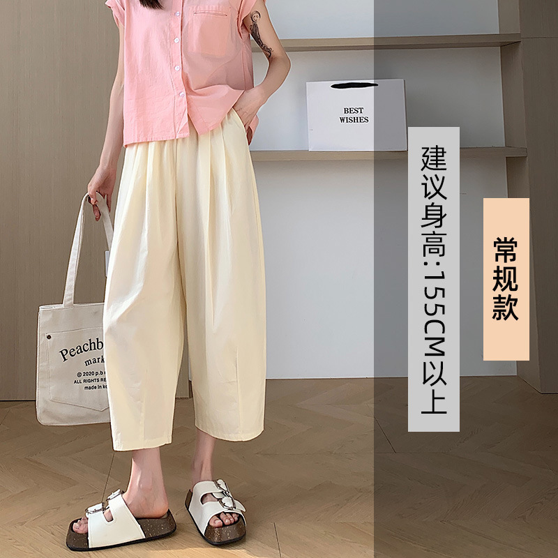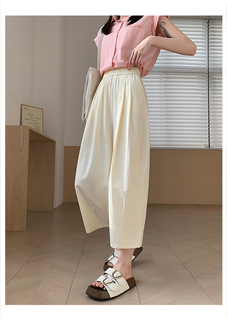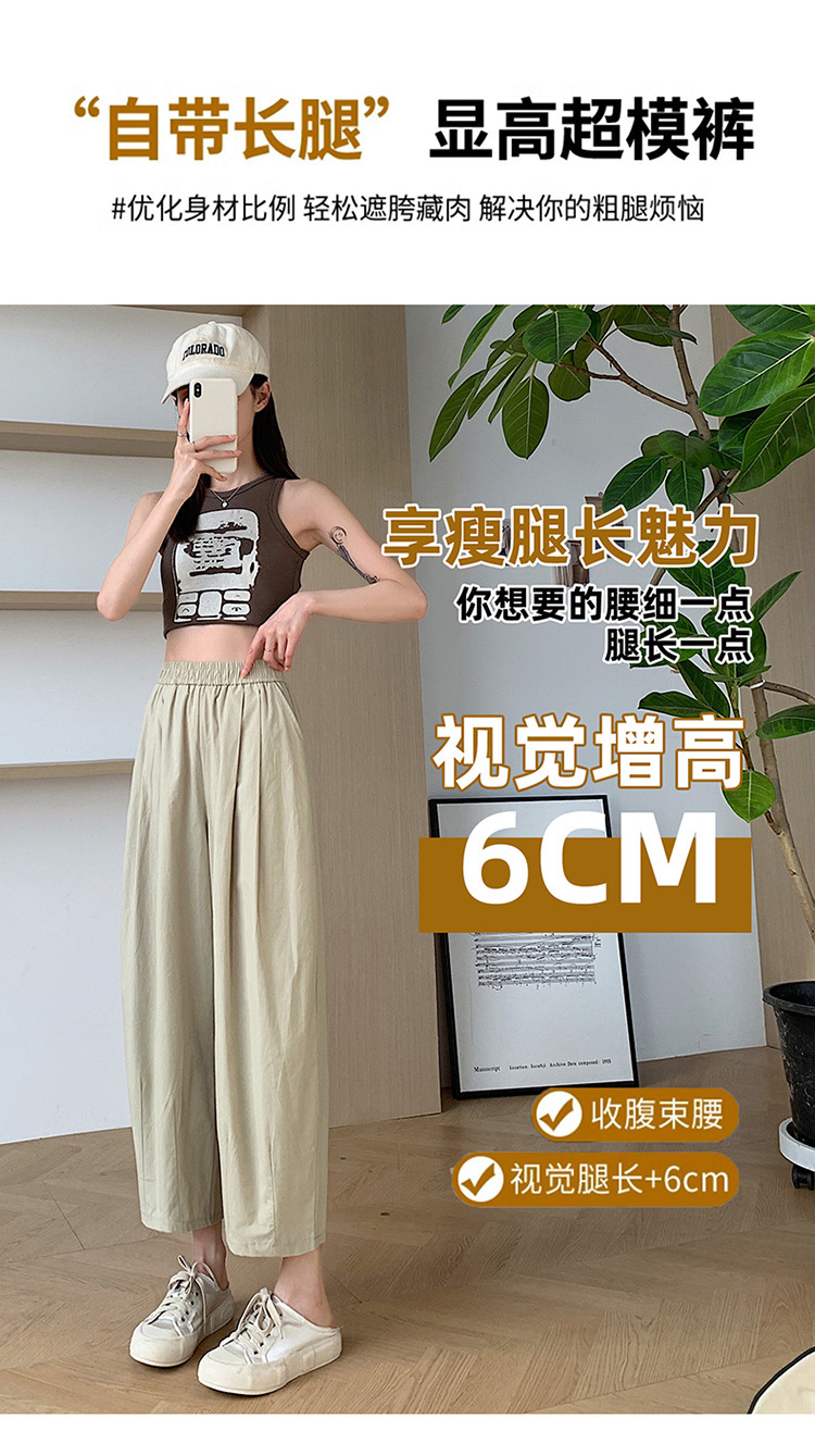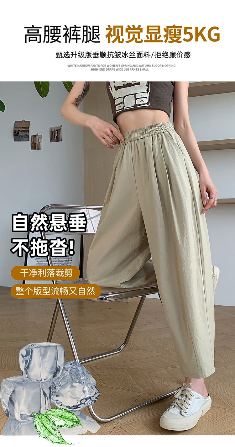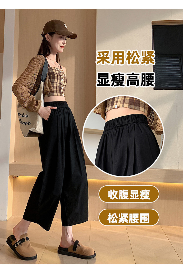 엘라 스토 탄성 워시 코튼 넓은 다리 여름 얇은 작은 할머니 바지 여성의 높은 허리 슬리밍 캐주얼 자른 아이스 실크 바지스토어 가기