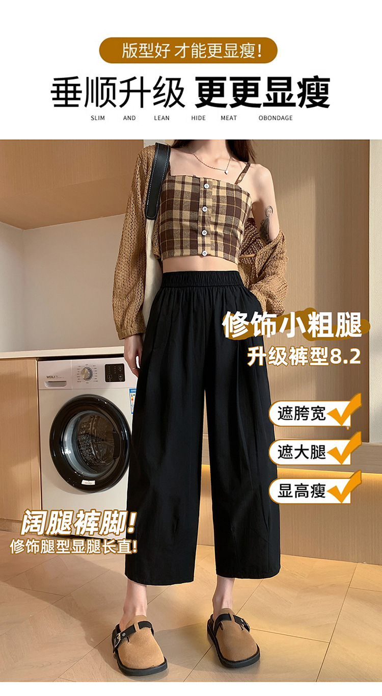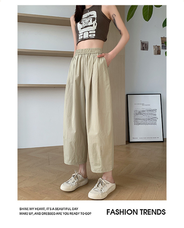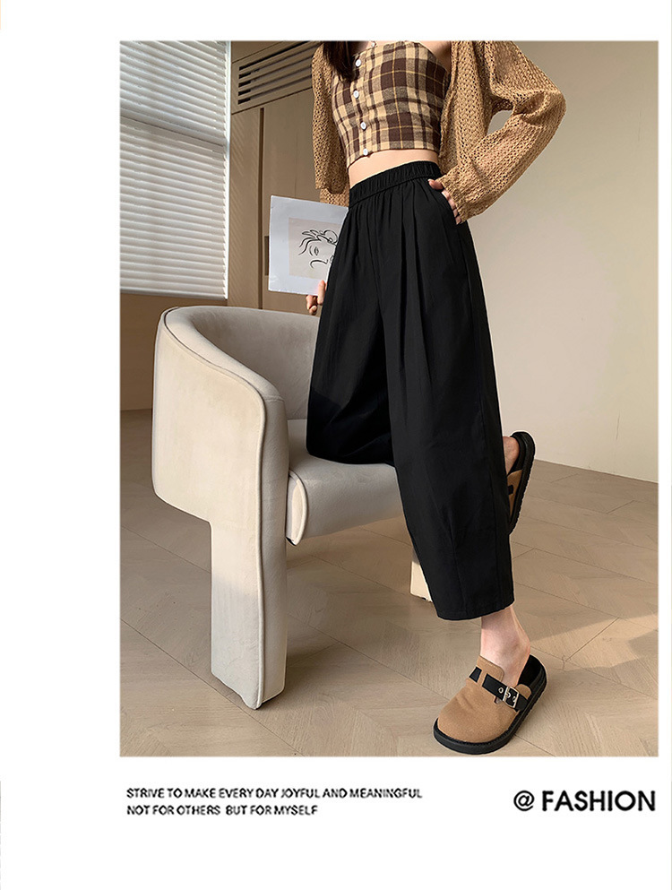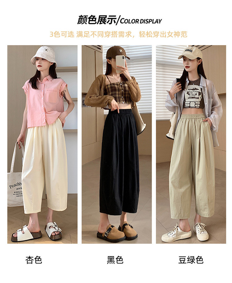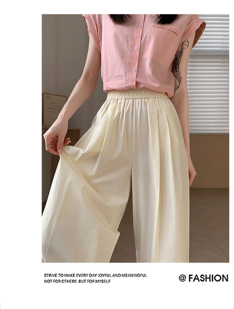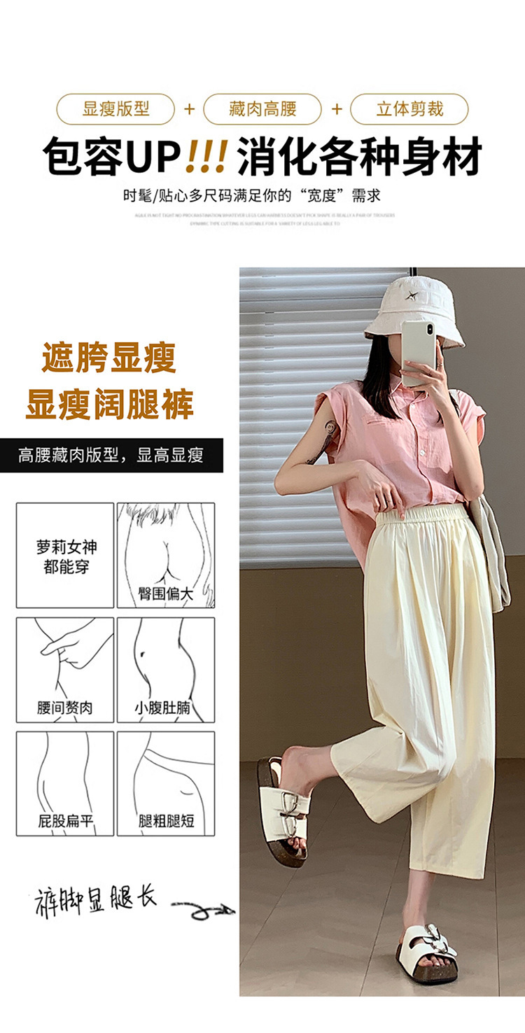 엘라 스토 탄성 워시 코튼 넓은 다리 여름 얇은 작은 할머니 바지 여성의 높은 허리 슬리밍 캐주얼 자른 아이스 실크 바지스토어 가기