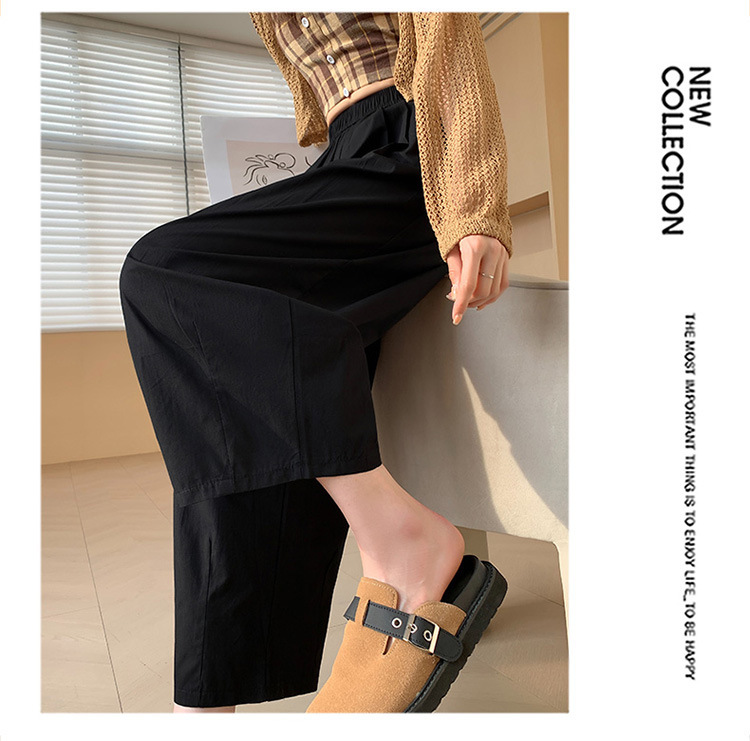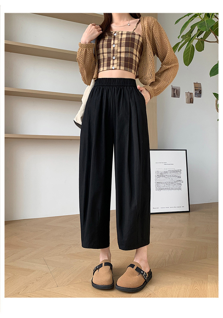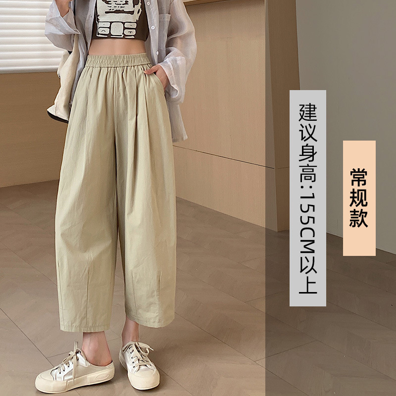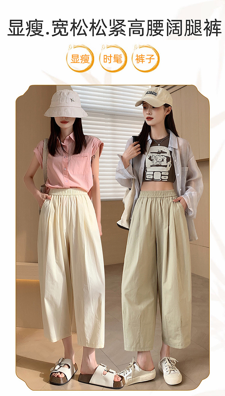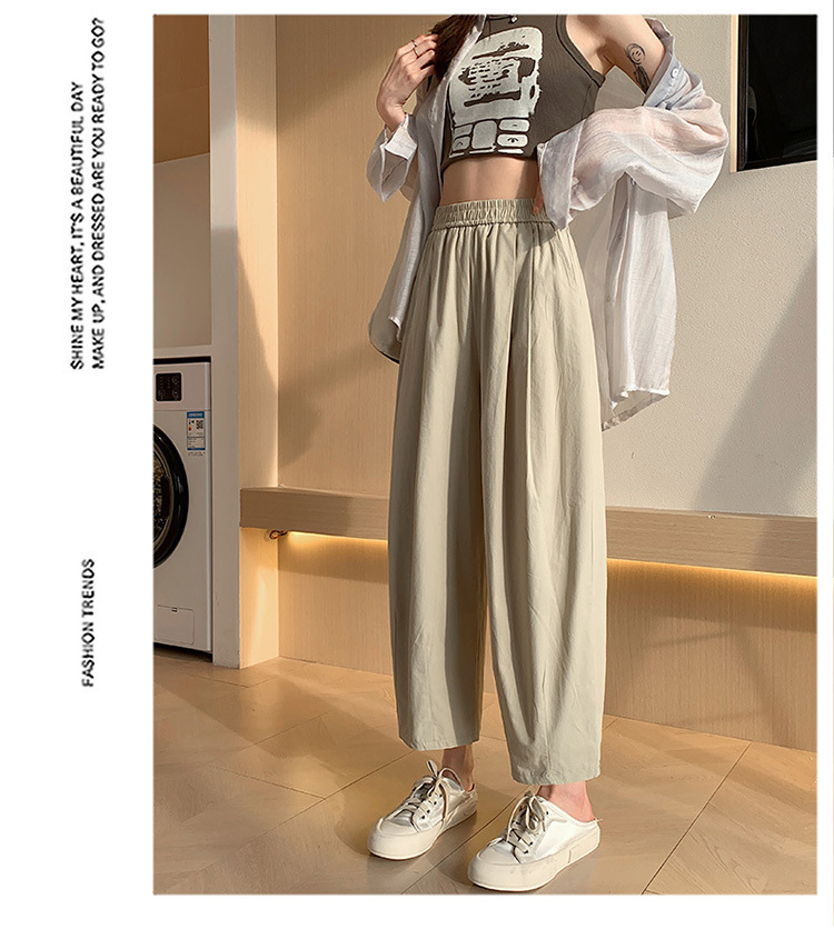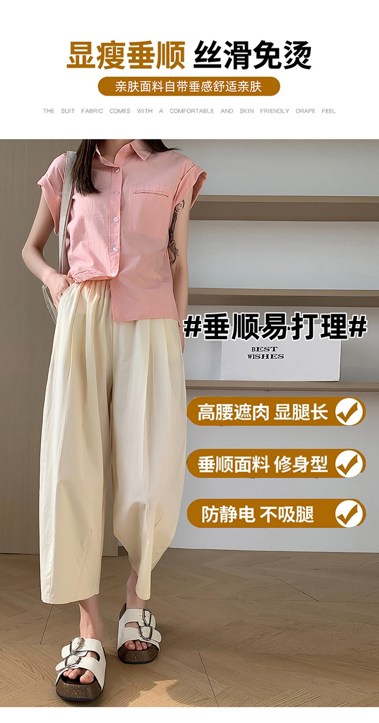 엘라 스토 탄성 워시 코튼 넓은 다리 여름 얇은 작은 할머니 바지 여성의 높은 허리 슬리밍 캐주얼 자른 아이스 실크 바지스토어 가기