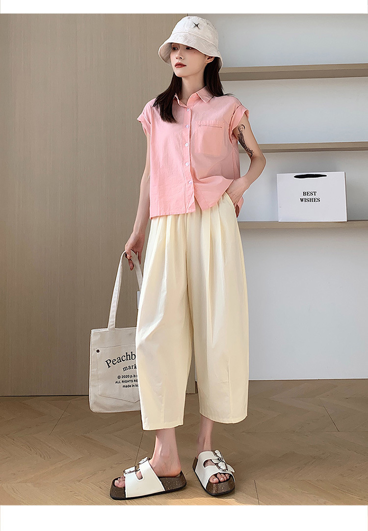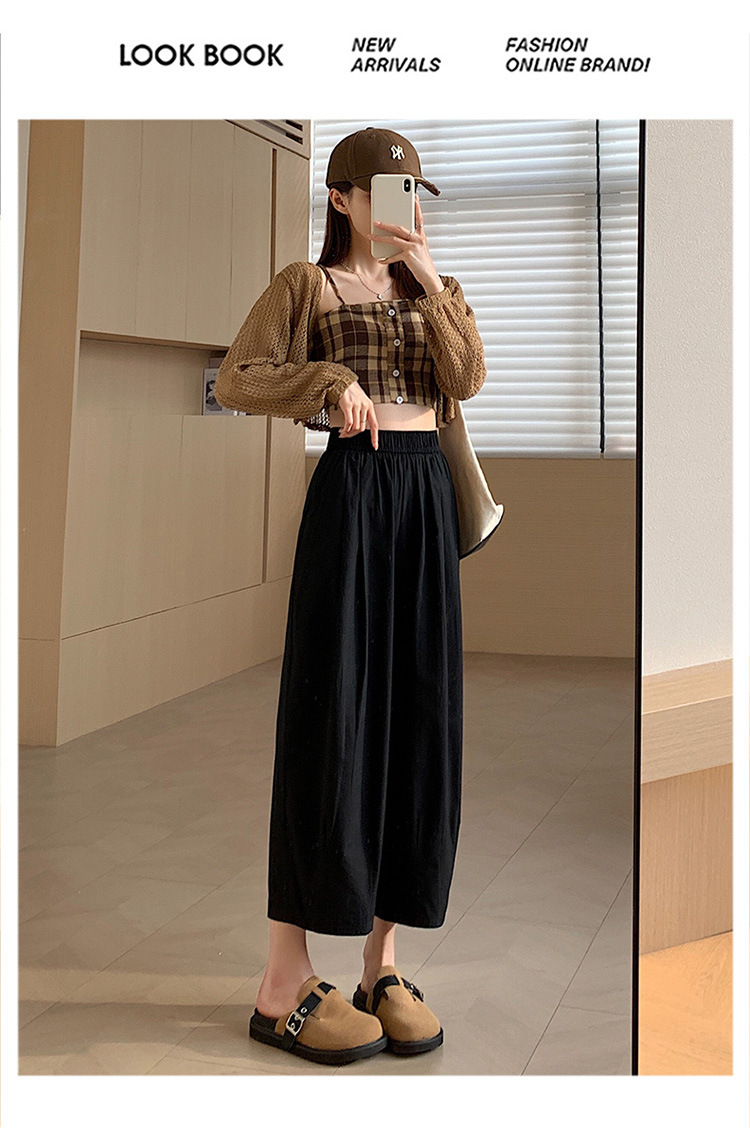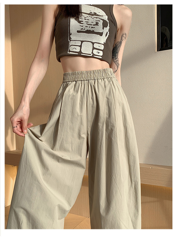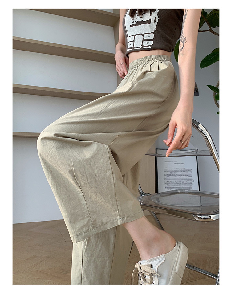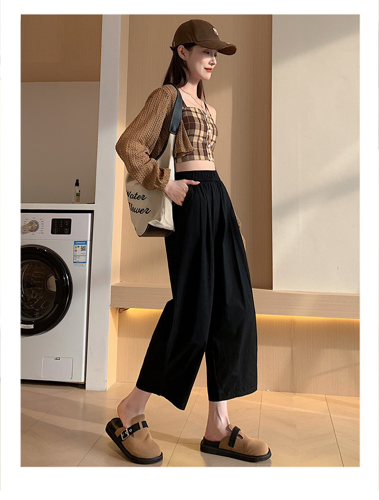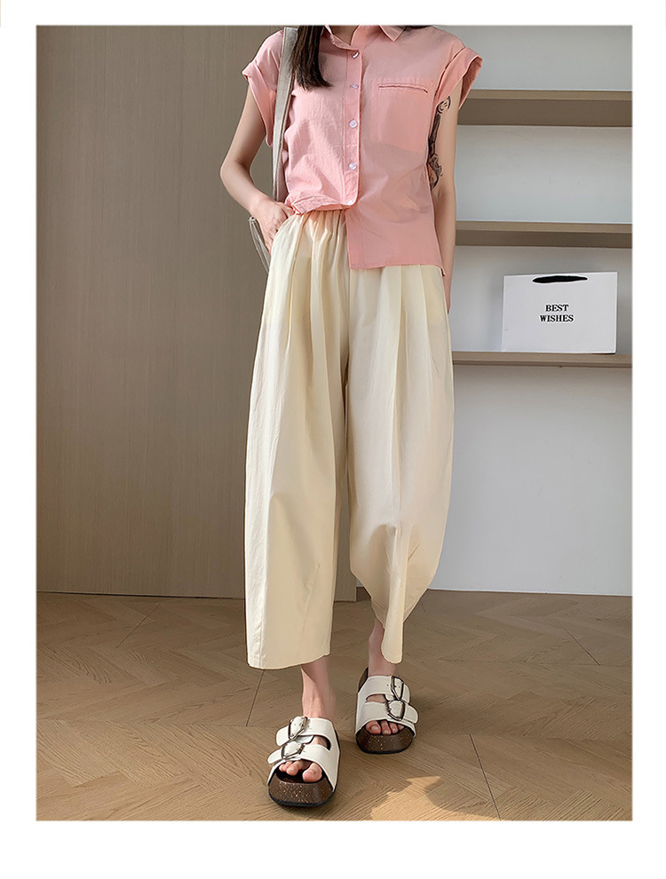 엘라 스토 탄성 워시 코튼 넓은 다리 여름 얇은 작은 할머니 바지 여성의 높은 허리 슬리밍 캐주얼 자른 아이스 실크 바지스토어 가기