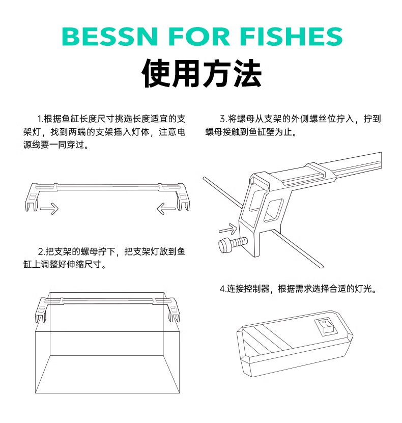 물고기 탱크 램프 LED 램프 Besson 방수 물고기 탱크 관상용 물 공장 램프 LED 전체 스펙트럼 조류 폭발 조명 잔디 탱크 브래킷 램프스토어 가기