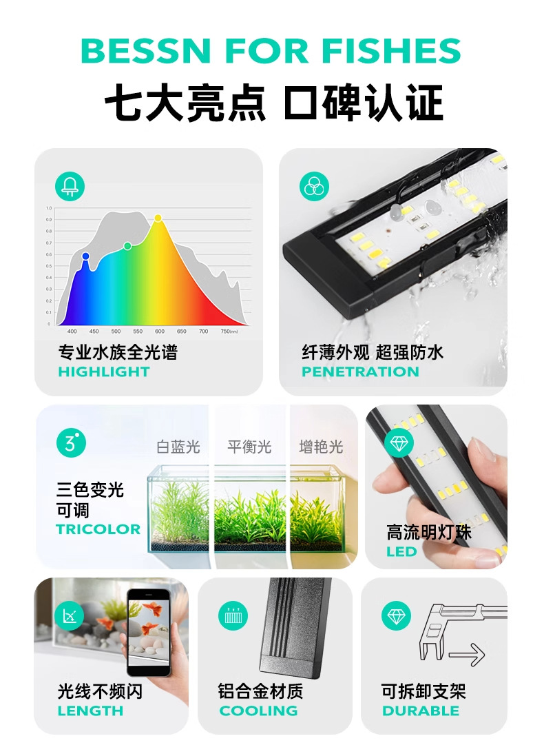 물고기 탱크 램프 LED 램프 Besson 방수 물고기 탱크 관상용 물 공장 램프 LED 전체 스펙트럼 조류 폭발 조명 잔디 탱크 브래킷 램프