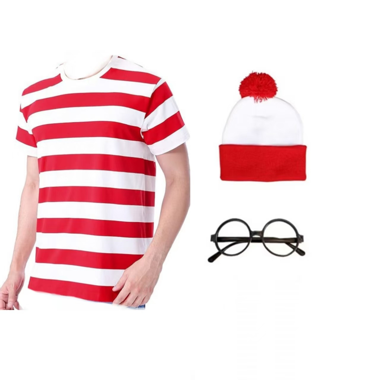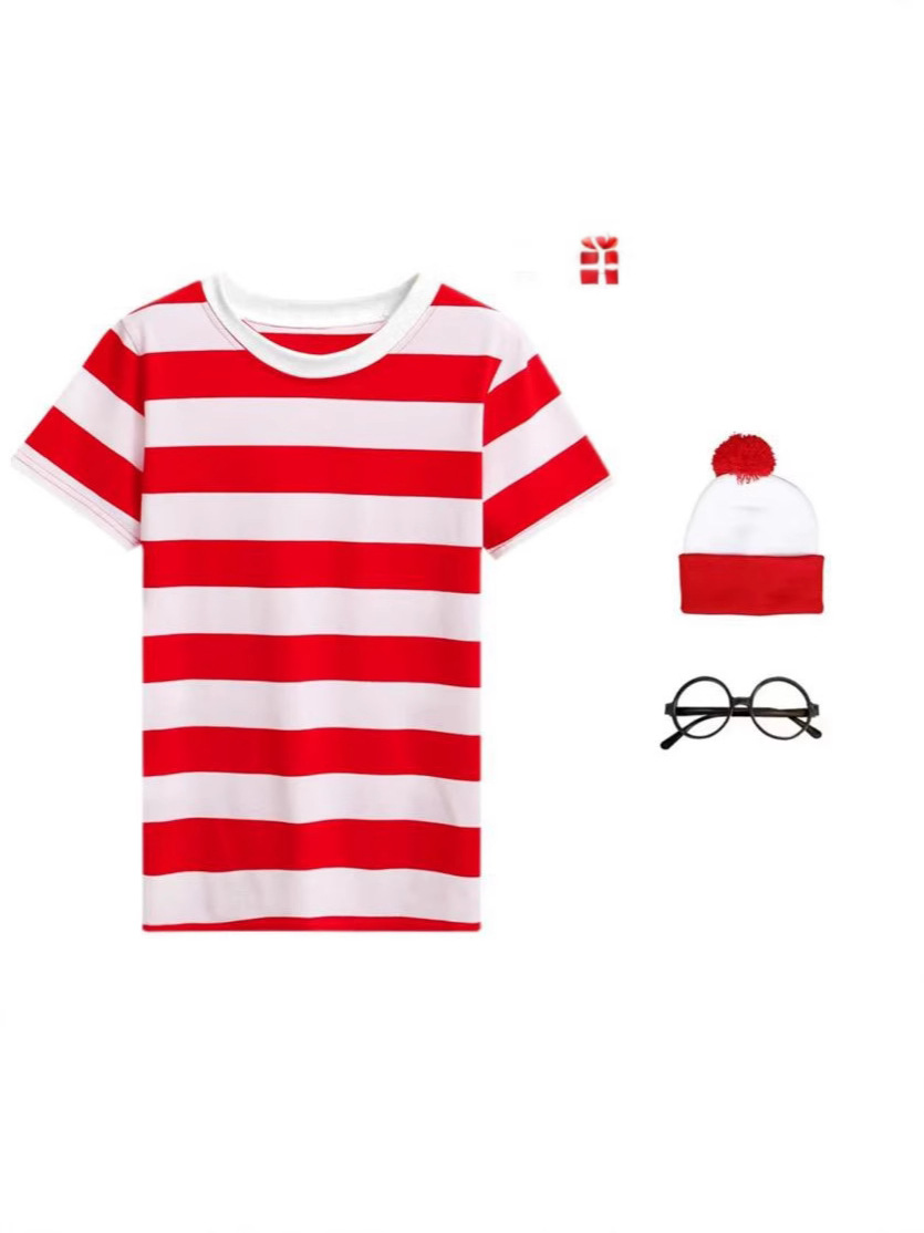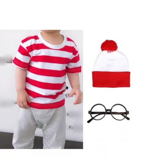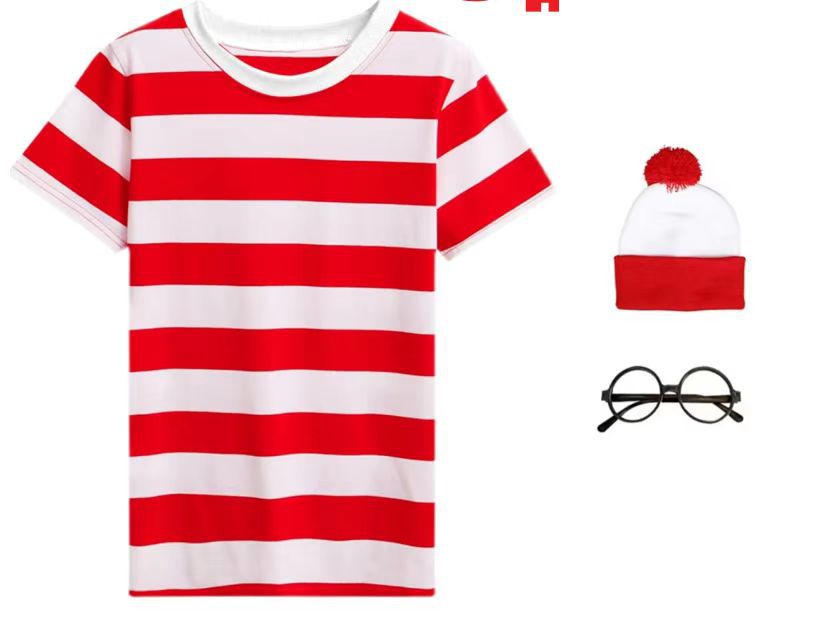 스마트 워리 반팔 어린이 및 성인용 영국 애니메이션 캐릭터 코스프레 의상 빨간 줄무늬 티셔츠스토어 가기