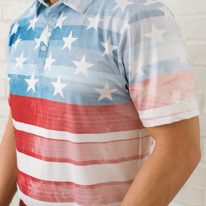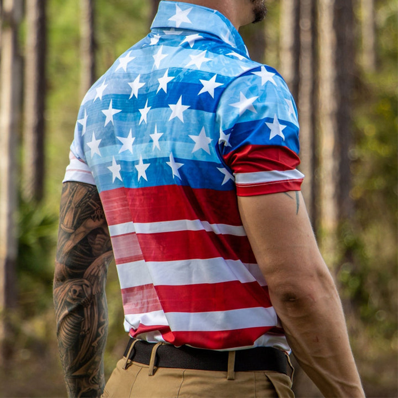 대외 무역 디지털 인쇄 골프 의류 미국 국기 인쇄 폴로 셔츠 남성 스포츠 반팔 탑스토어 가기