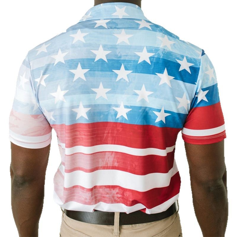대외 무역 디지털 인쇄 골프 의류 미국 국기 인쇄 폴로 셔츠 남성 스포츠 반팔 탑