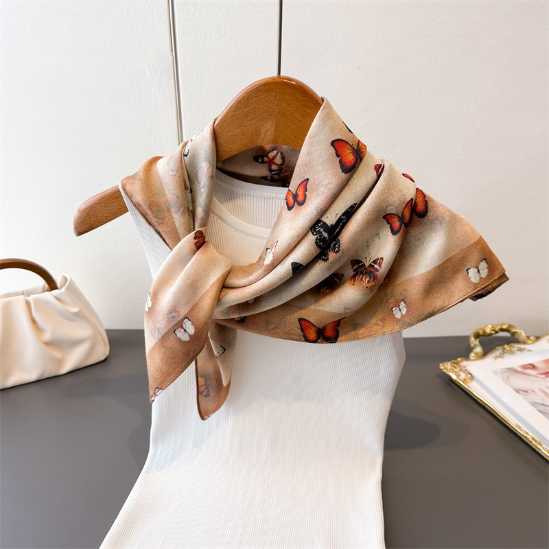 양면 더블 컬러 헤링본 패턴 나비 스카프 작은 스퀘어 스카프 선 스크린 고급 감각 하이 퀄리티 목도리 목 헤드 스카프스토어 가기