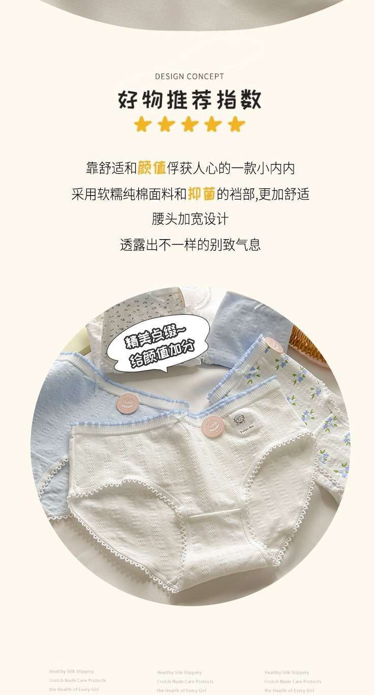 7A 항균 속옷 여성 클래스 아기면 편안한 통기성 귀여운 소녀 중간 허리 엉덩이 학생 브리프스토어 가기