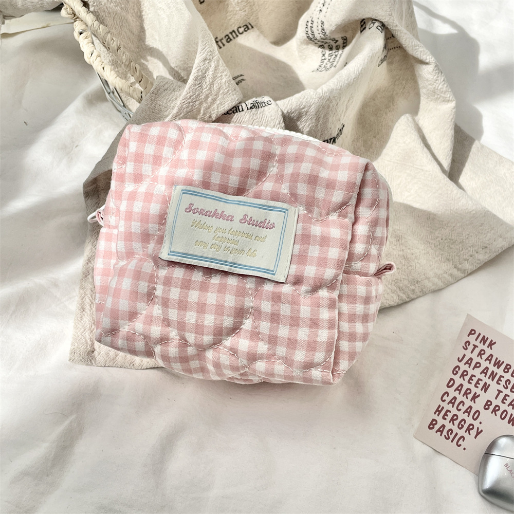 5411 베리 컬러 격자 무늬 위생 가방 대용량 학생 화장품 가방 위생 냅킨 월경 가방 보관 가방스토어 가기