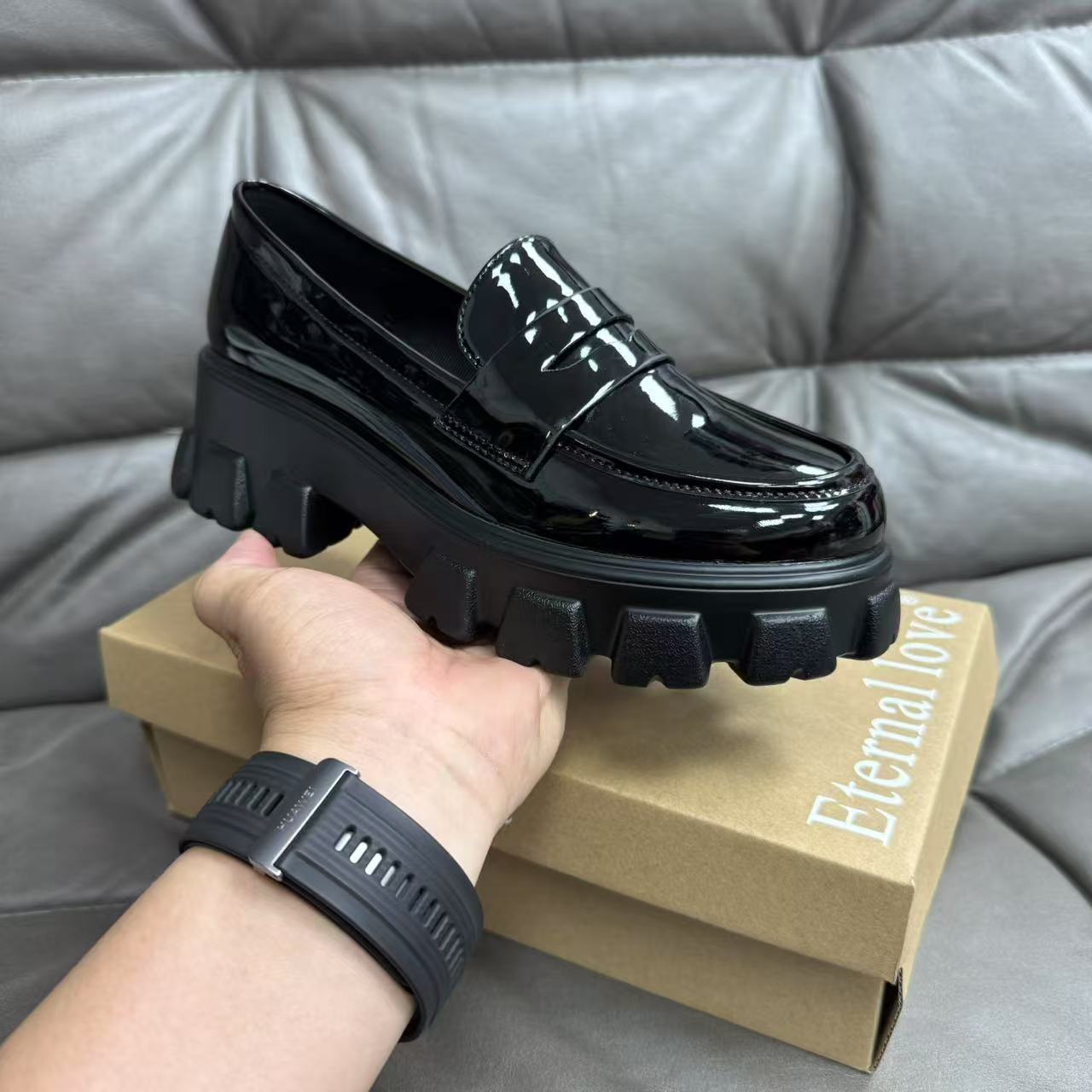 여성용 여름 영국 스타일 두꺼운 밑창 가죽 신발 미드 힐 소프트 밑창 게으른 메리 제인 신발스토어 가기