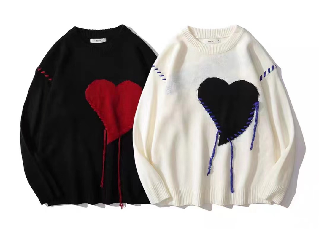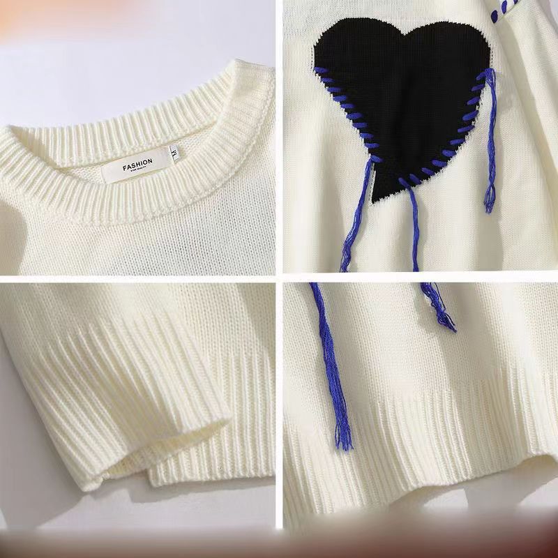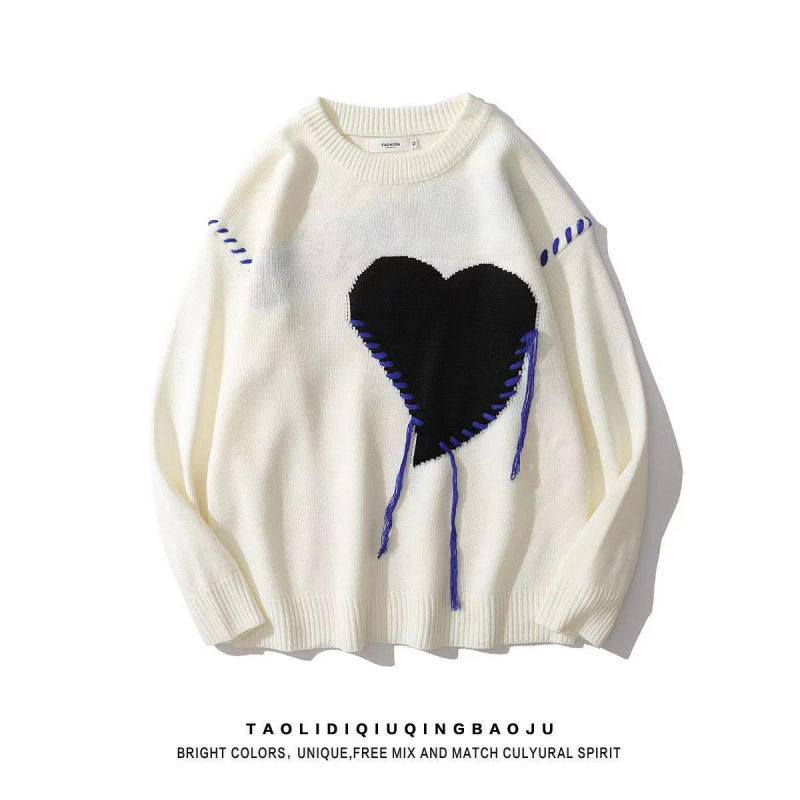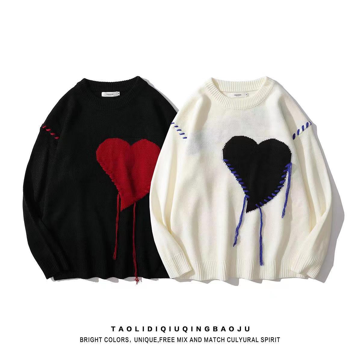 가을, 겨울 수제 사랑 남자 라운드 넥 스웨터 여성 트렌드 커플 착용 반팔 게으른 스타일 재킷스토어 가기