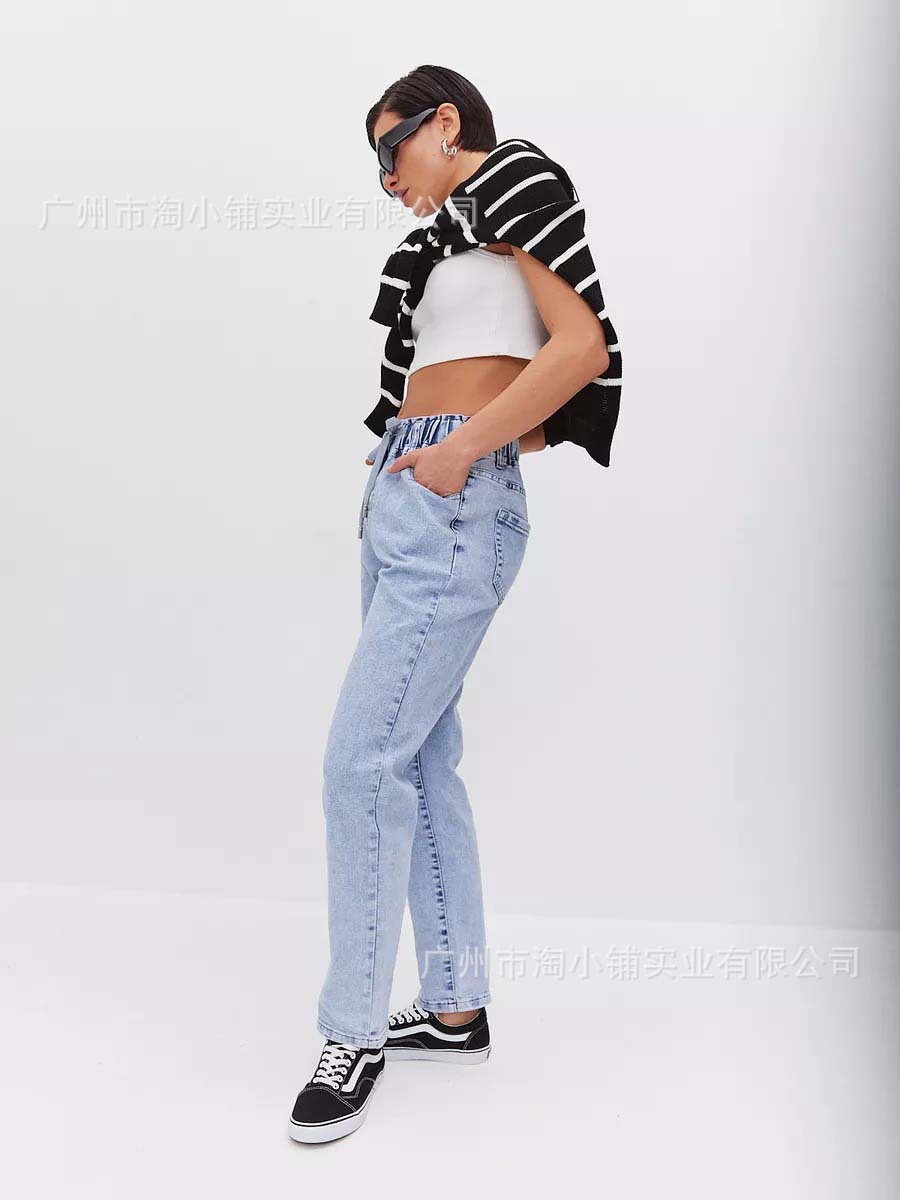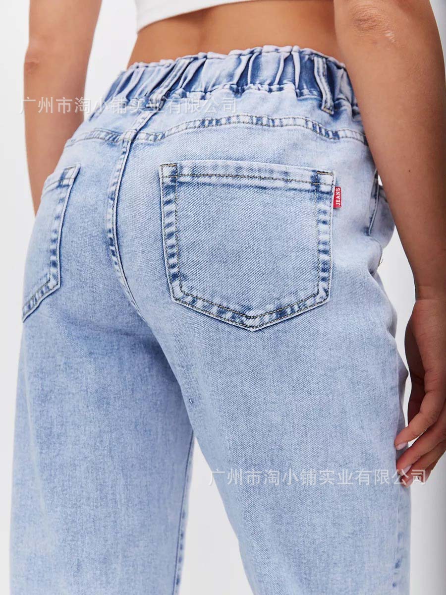 2025 여름 여성 유럽과 미국의 트렌디 슬리밍 찢어진 스트레이트 데님 바지 새로운 스트레이트 하이 웨이스트 청바지스토어 가기