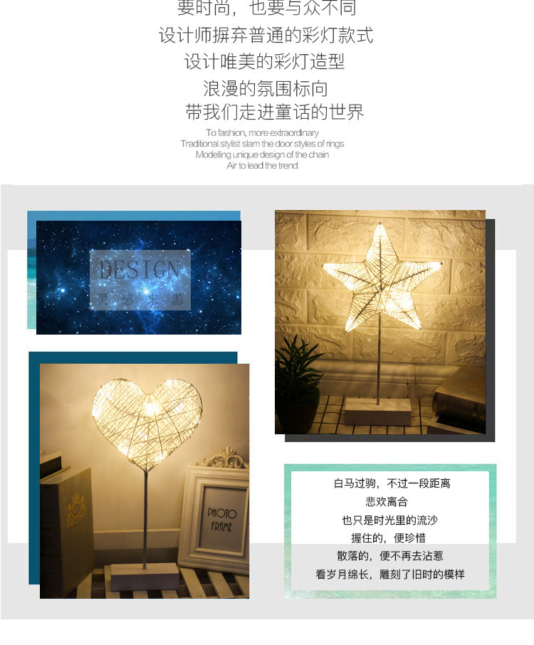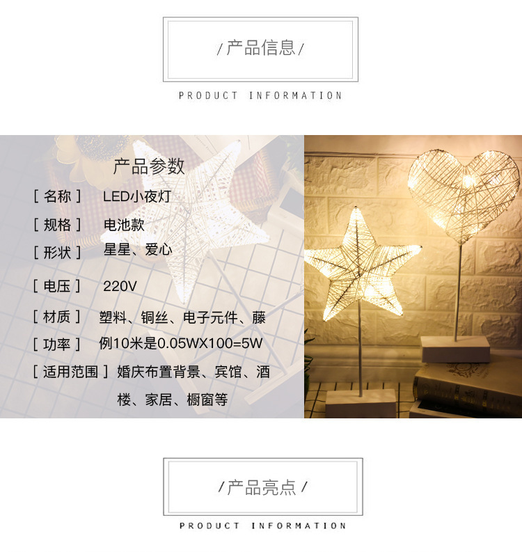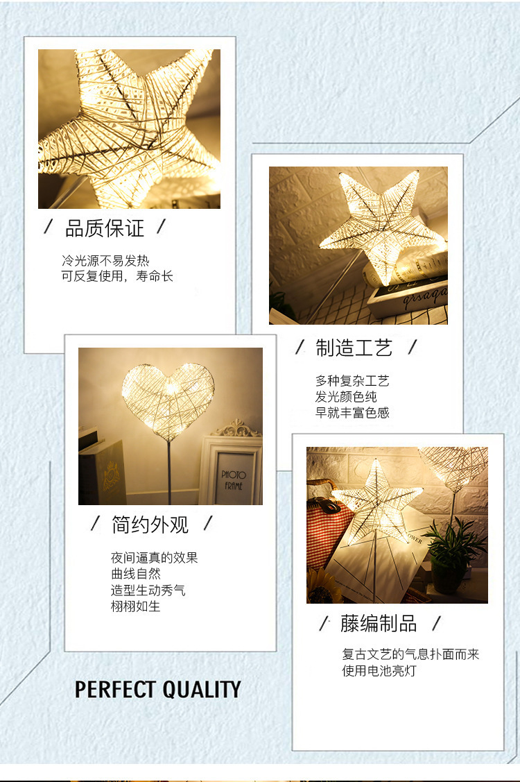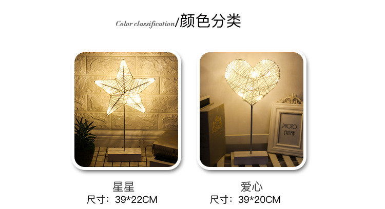 등나무 별 사랑 테이블 램프 LED 배터리 야간 조명 크리스마스 트리 침실 장식 인터넷 연예인 라이브 방송 배경 레이아웃