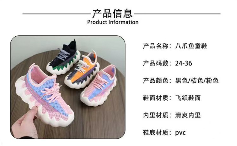 [자동 유통 독점] 새로운 어린이용 부드러운 밑창, 가볍고 패셔너블한 문어 플라이 위빙 캐주얼 스포츠 아동화스토어 가기