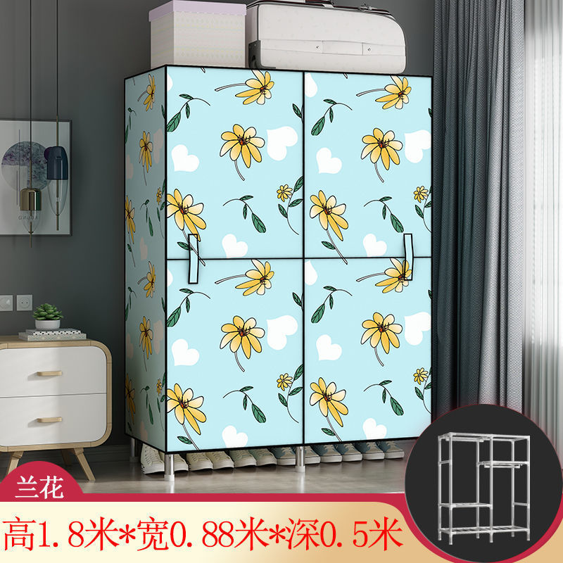 가정용 침실용 오픈 도어 간단한 천 옷장, 전체 강철 프레임, 두껍고 두꺼운 강철 파이프, 임대 주택, 튼튼하고 내구성이 뛰어난 옷장