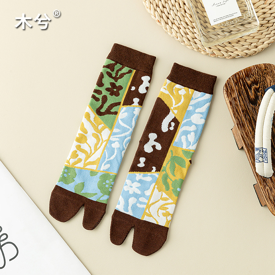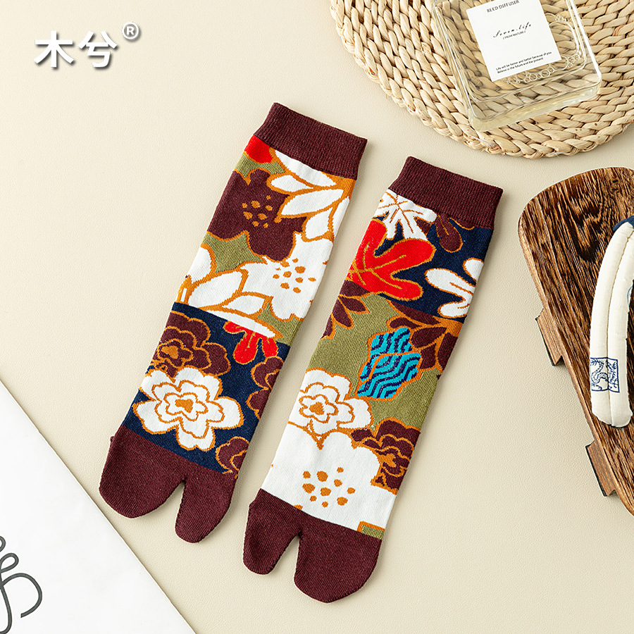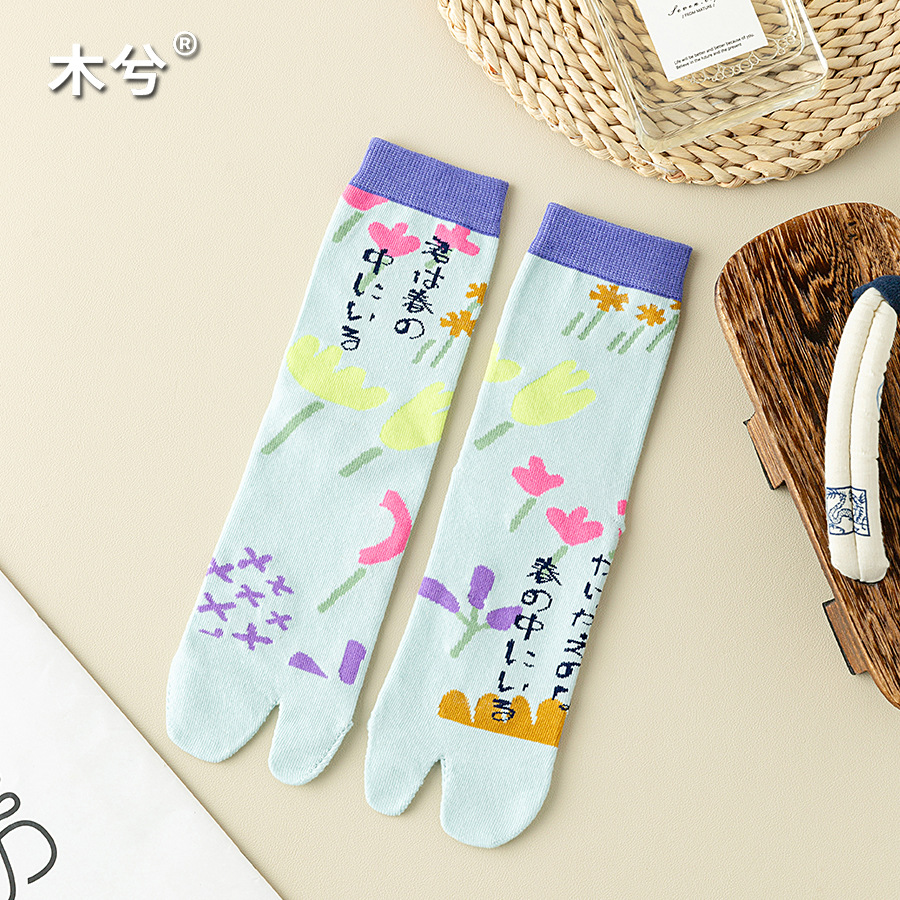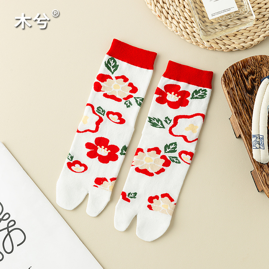 꽃 두 발가락 양말 여성 중간 발가락 양말 Instagram 유행 여성 양말 일본 스타일 귀여운 소녀의 발가락 양말 돼지 신발 양스토어 가기