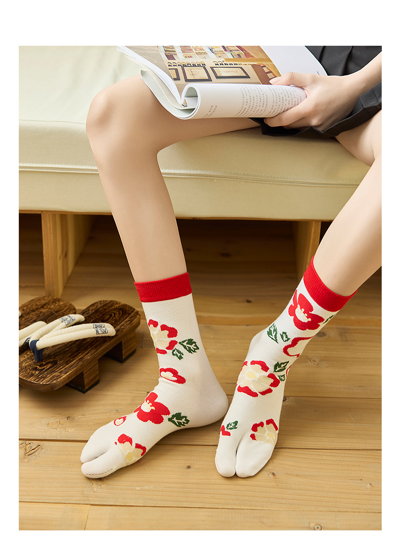 꽃 두 발가락 양말 여성 중간 발가락 양말 Instagram 유행 여성 양말 일본 스타일 귀여운 소녀의 발가락 양말 돼지 신발 양