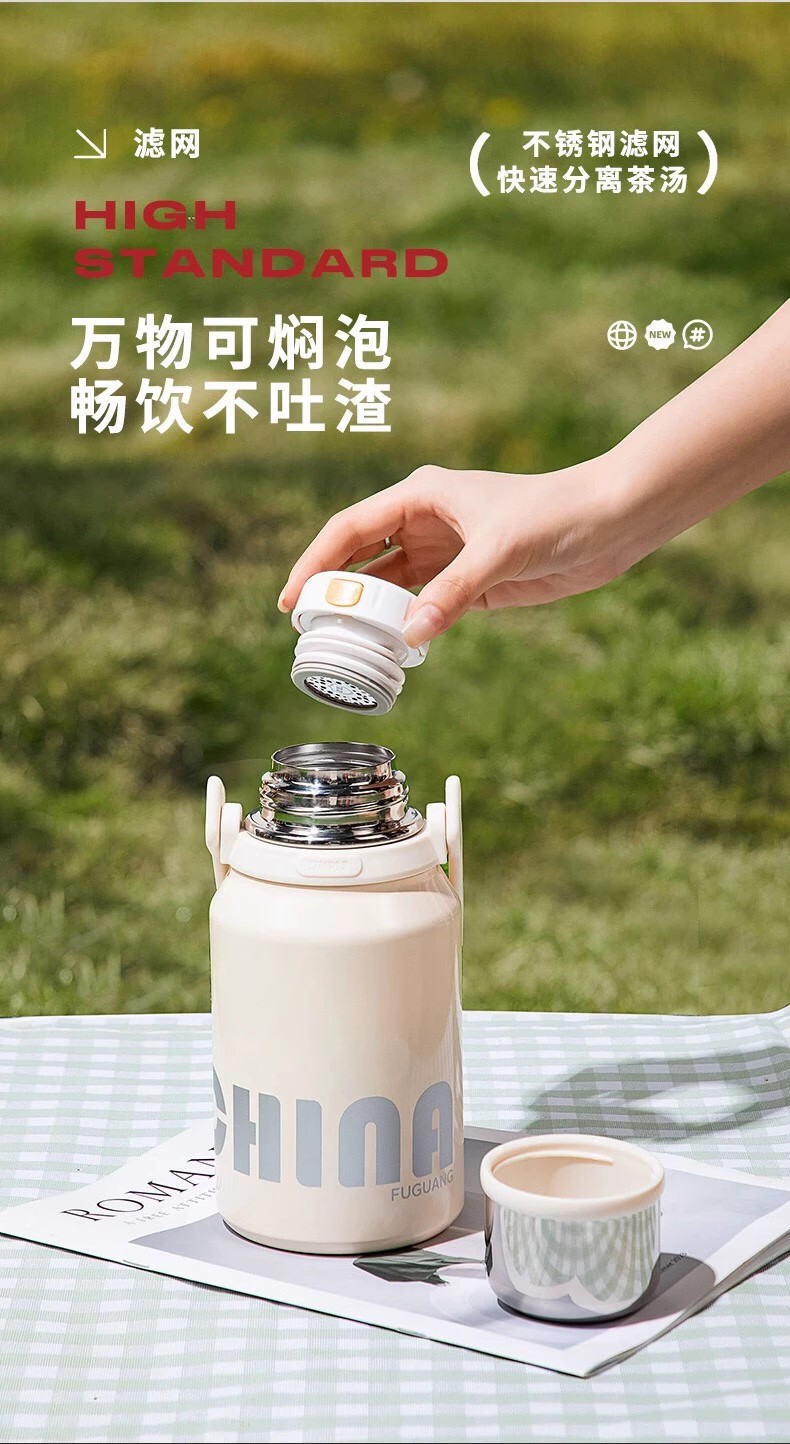 Fuguang 2284 Langxing 진공 컵 316 스테인레스 스틸 대용량 휴대용 배꼽 더블 음료 보온병 컵 야외스토어 가기