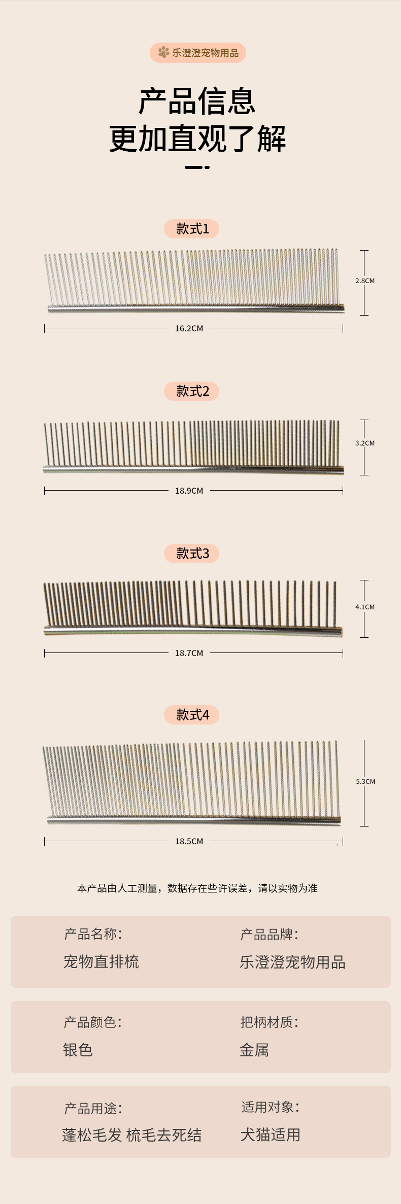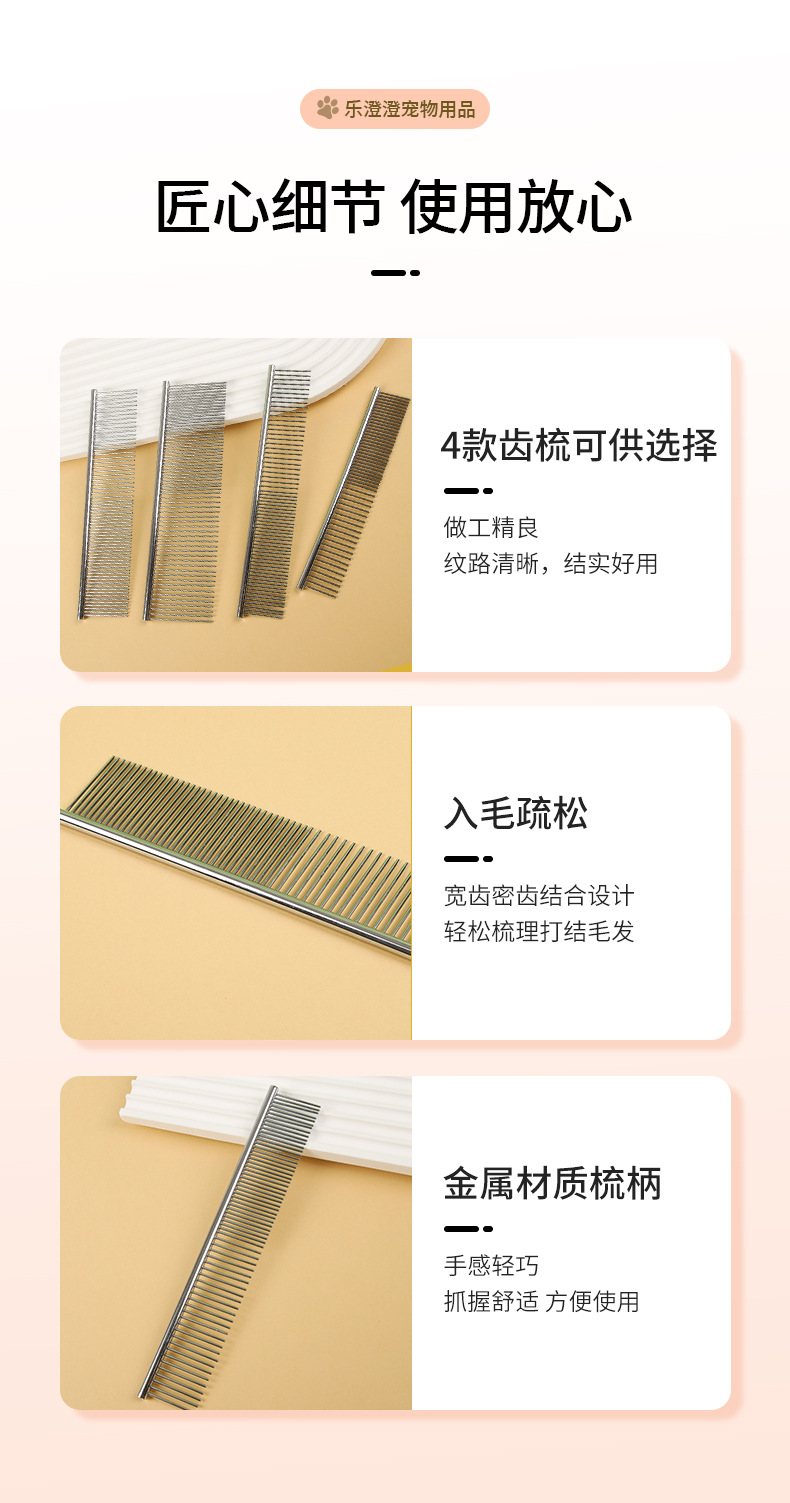 애완 동물 헤어 스테인레스 스틸 스트레이트 빗 고양이 개 뷰티 청소 오픈 매듭 빗 애완 동물 용품 도매스토어 가기