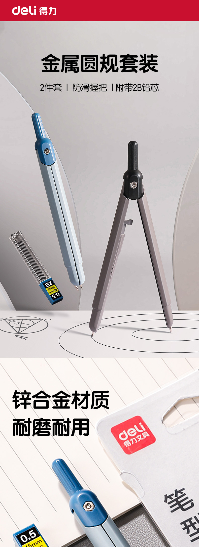 델리 VC10 펜 나침반 금속 초등학생 특수 수학 및 기하학 교육용 6학년 중학생