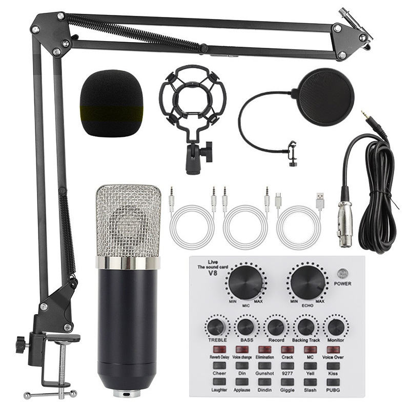 BM700 콘덴서 마이크 V8 휴대 전화 사운드 카드 국경 간 앵커 컴퓨터 팟 캐스트 장비 라이브 세트