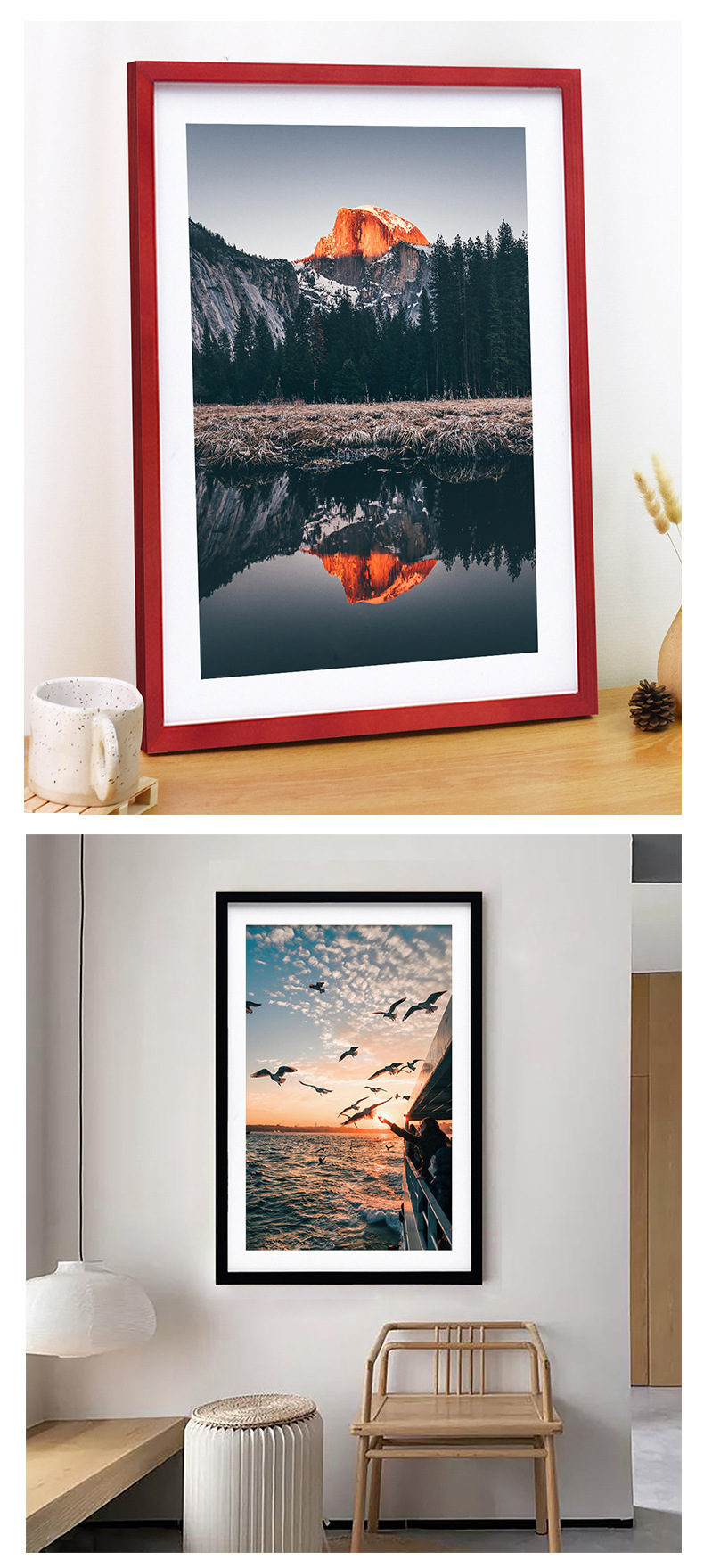아마존 대형 단단한 나무 사진 프레임 홈 프레임 4K 벽걸이 탁상 풍경 관광 기념 사진 프레임 도매