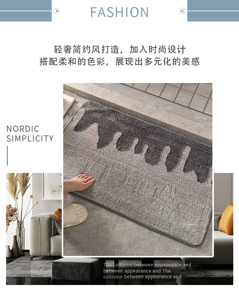 현대 간단한 욕실 바닥 매트 국경 아마존 발 매트 화장실 문 흡수성 미끄럼 방지 캐시미어 모양의 바닥 매트스토어 가기