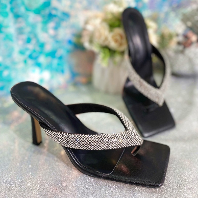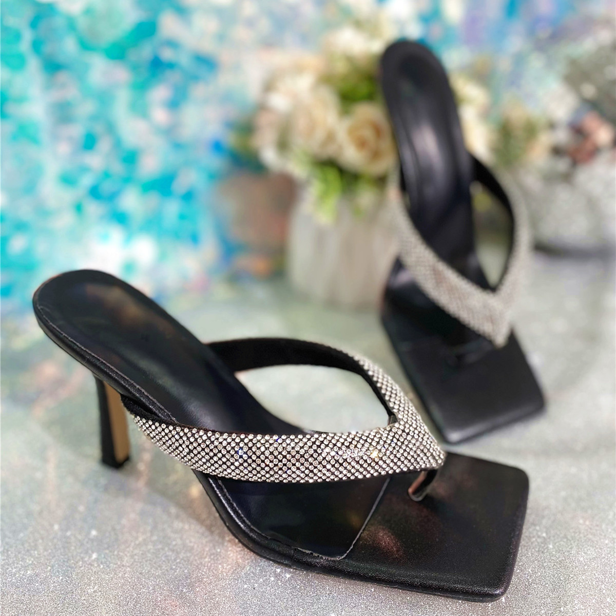 대외 무역 새로운 섹시한 맞춤형 하이힐 라인스톤 플립플롭 샌들 329-010 블랙 35-42 사이즈스토어 가기