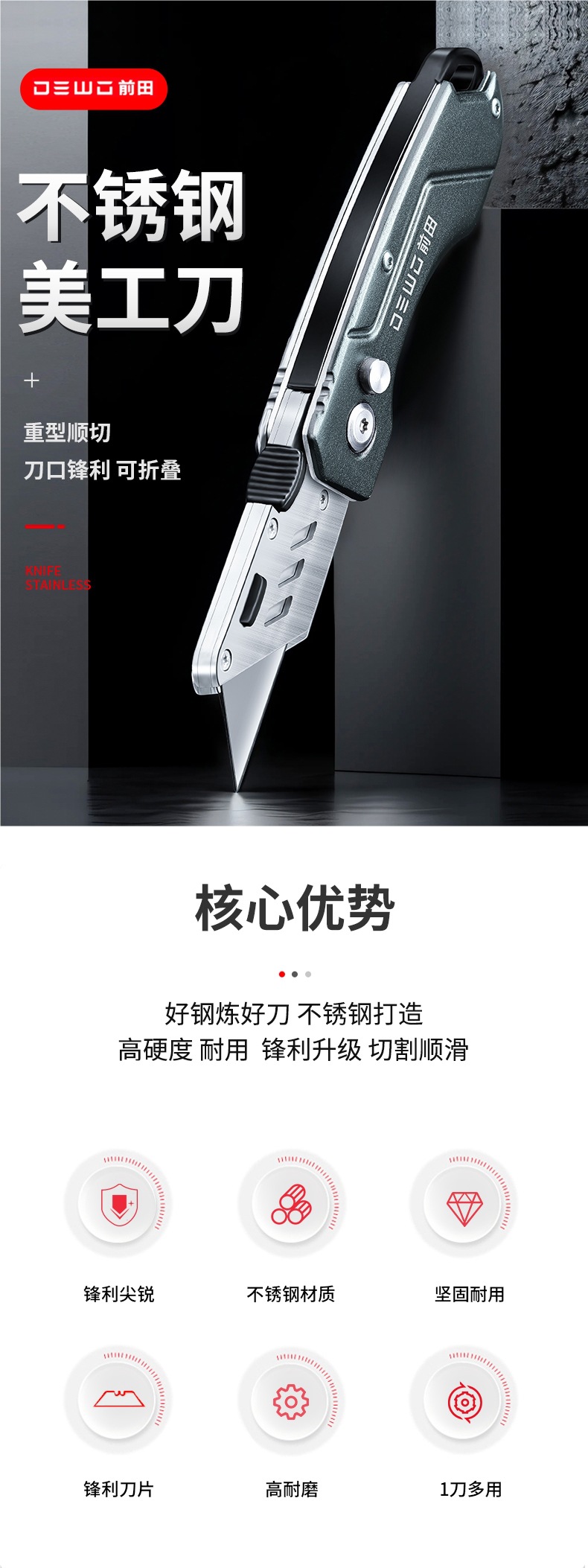 • [5-in-1 스테인레스 스틸 칼] 전체 스틸 칼 홀더 1개