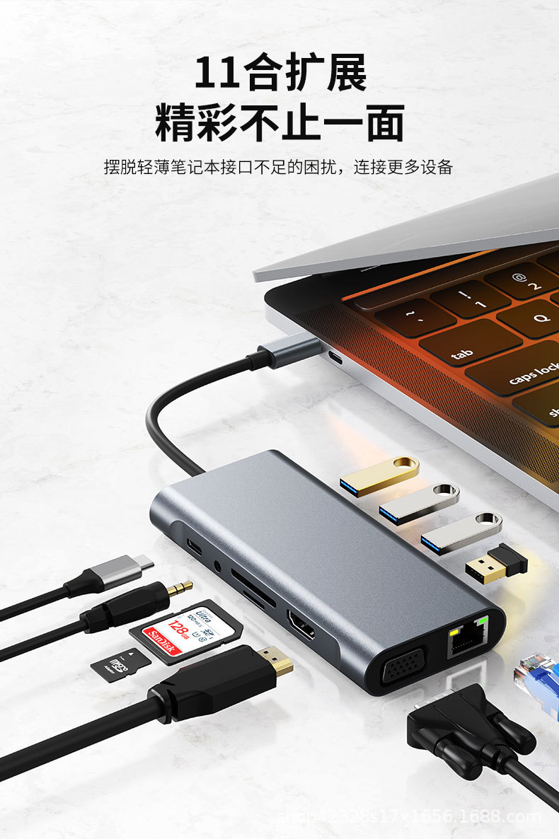 국경 11-in -1type-c 도킹 스테이션 컴퓨터 100 메가 바이트 네트워크 인터페이스 도킹 노트북 USB 허브스토어 가기