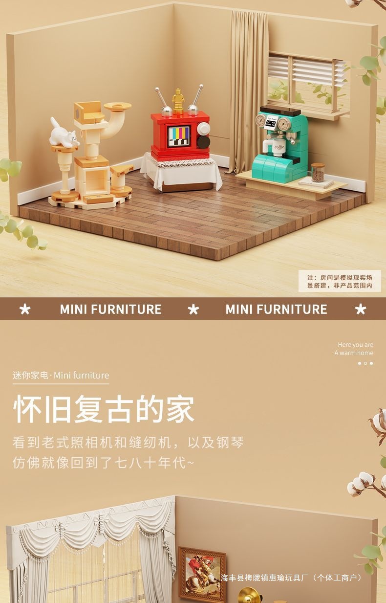 Diku 빌딩 블록은 레고 장난감과 호환됩니다. 어린이 조립 미니 가구 소녀 조립 가전 제품 모델 퍼즐 피아노스토어 가기