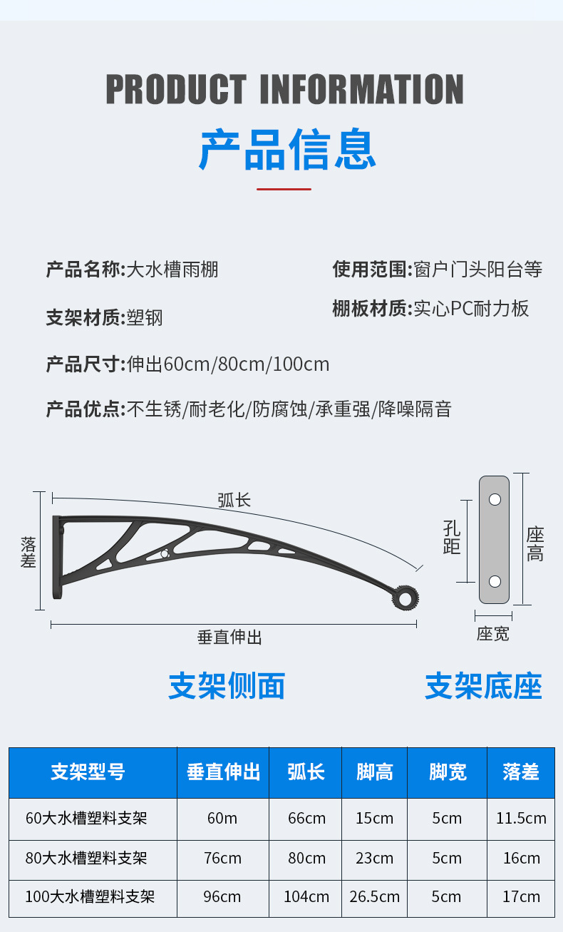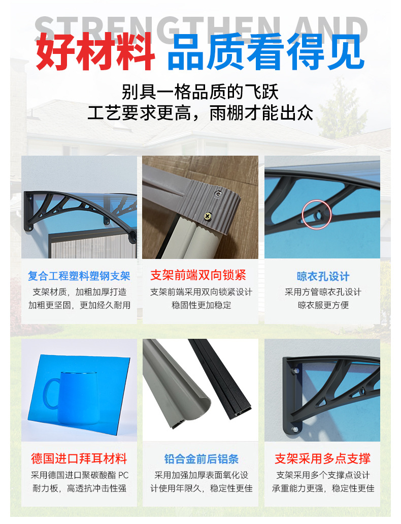 플라스틱 강철 대형 싱크 도어 헤드 캐노피 지붕 처마 야외 차양 창 비 구축 발코니 안뜰 레인 보드 차양