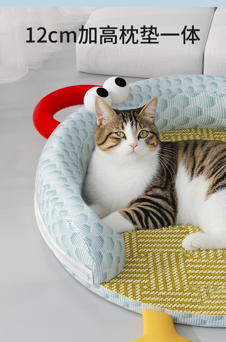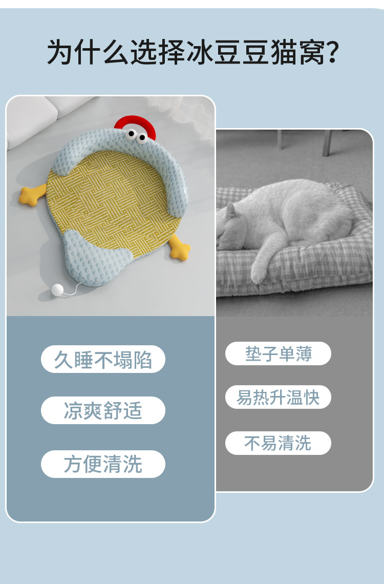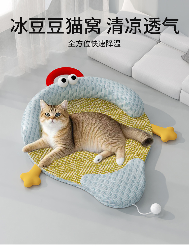 여름 애완동물 둥지, 고양이 둥지, 탈부착 및 세척 가능한 고양이 매트, 범용 두꺼운 방습 및 통기성 수면 매트, 냉각 매트, 얼음콩 둥지스토어 가기