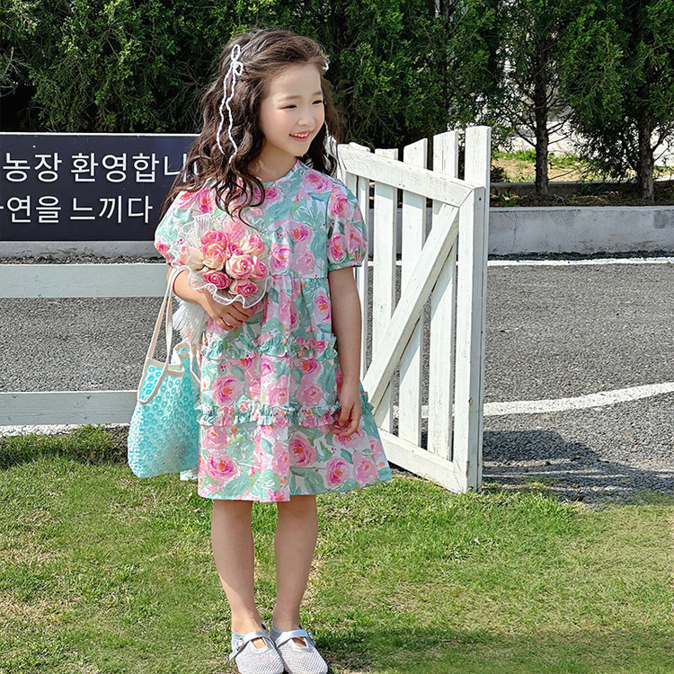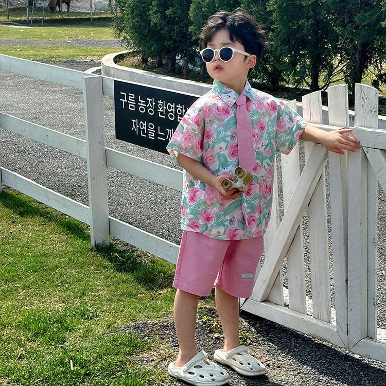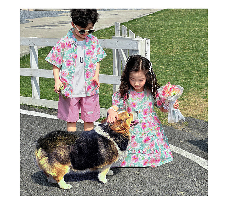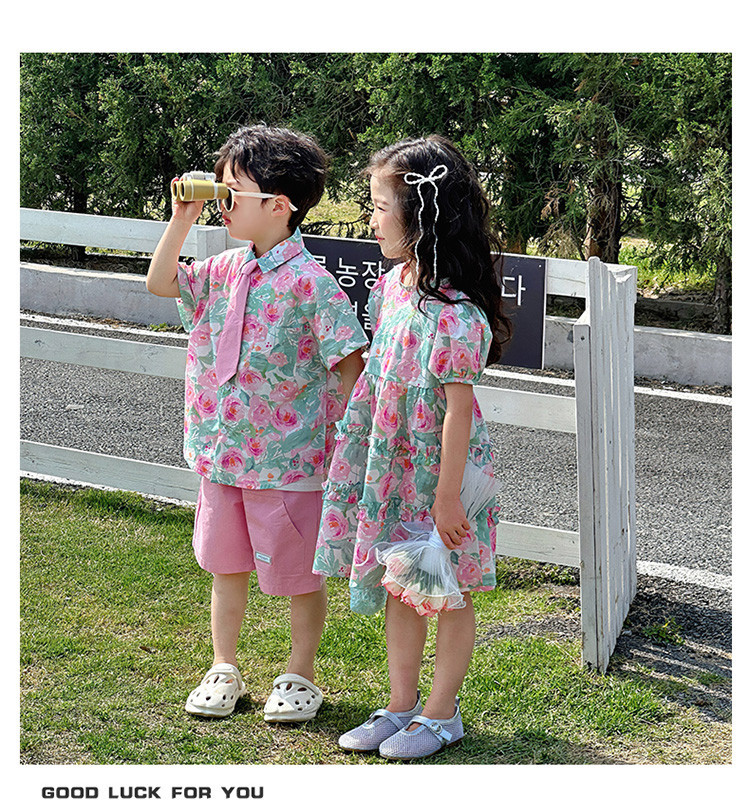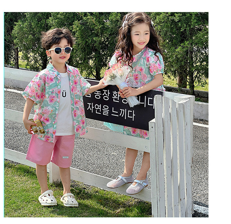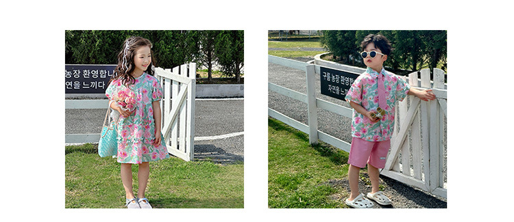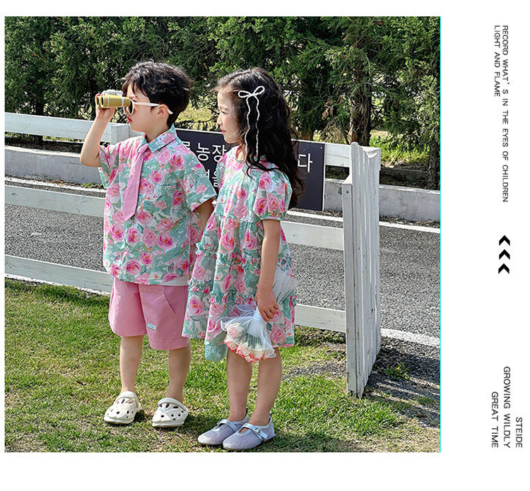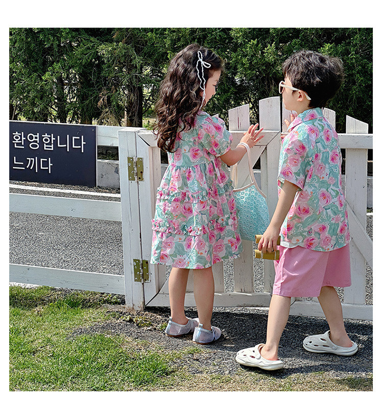 소년 반팔 꽃무늬 셔츠, 아기 휴가복, 아동 해변복 투피스 세트, 여름 소녀 꽃무늬 드레스스토어 가기