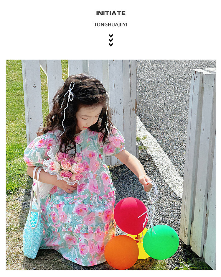 소년 반팔 꽃무늬 셔츠, 아기 휴가복, 아동 해변복 투피스 세트, 여름 소녀 꽃무늬 드레스