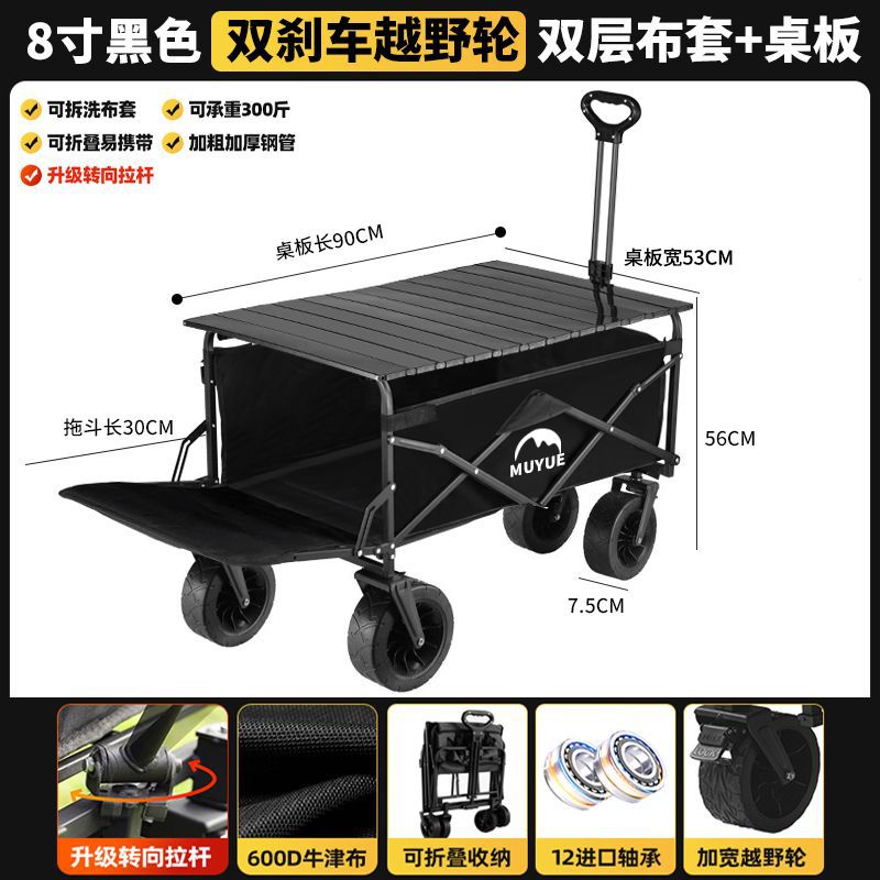 • 블랙 [이중 두꺼운 옥스포드 천] - 업그레이드 / 8inch 오프로드 휠 / 더블 브레이크 + 강화된 나뭇결 테이블