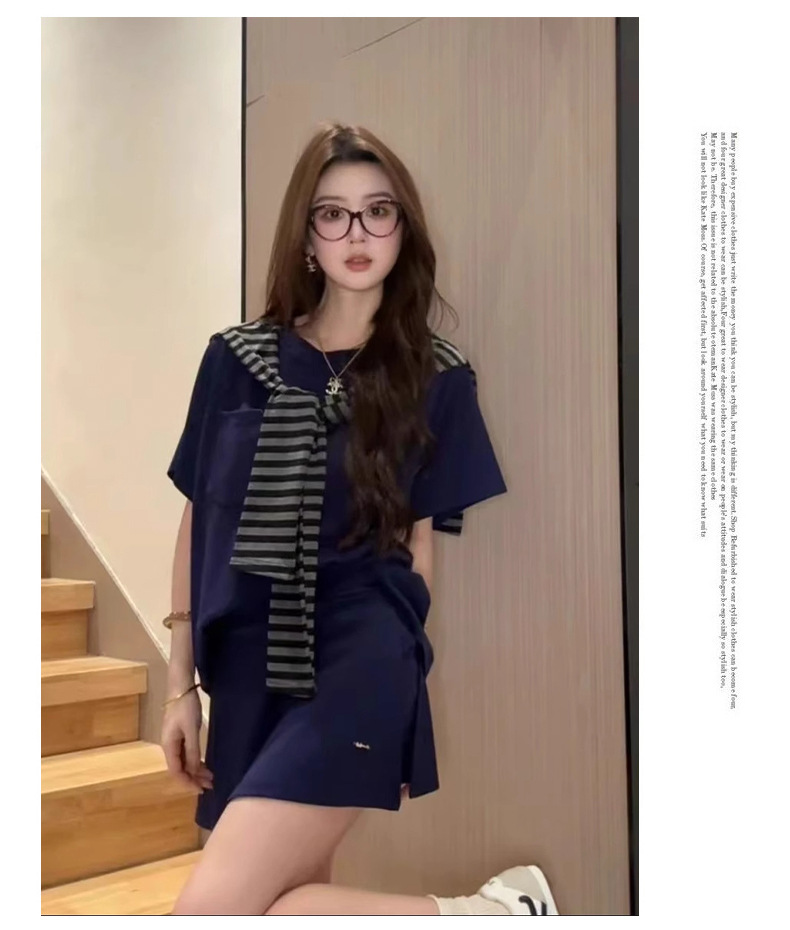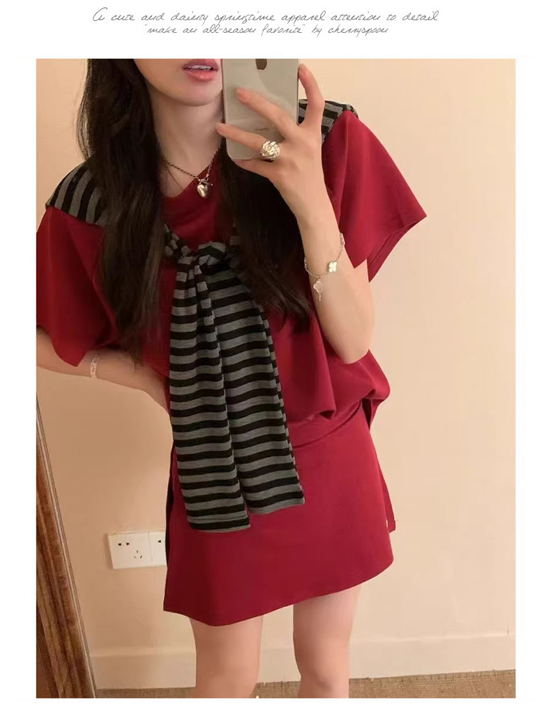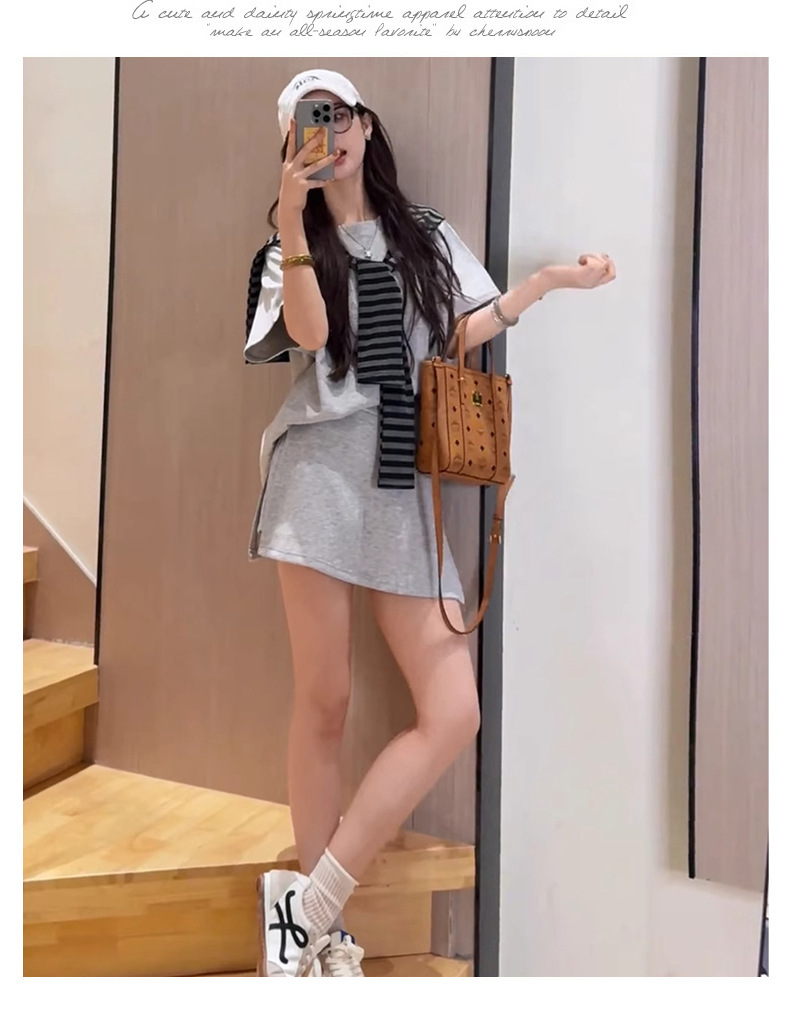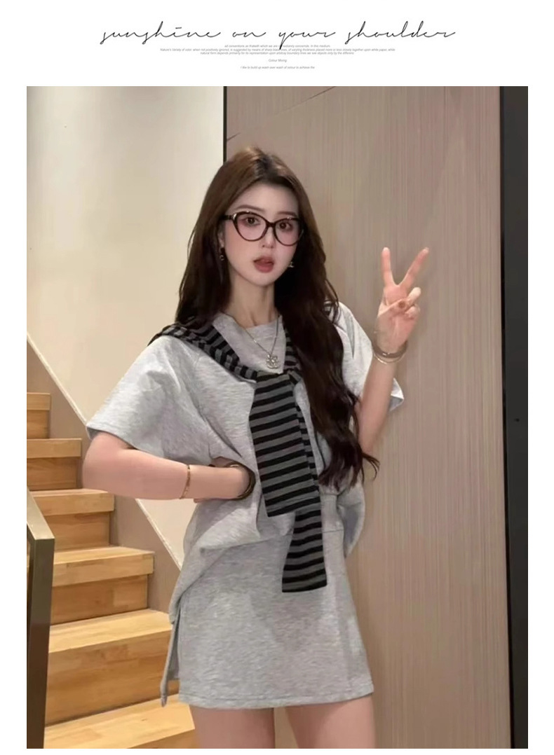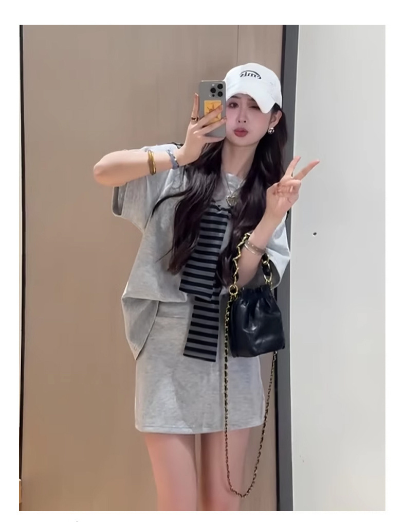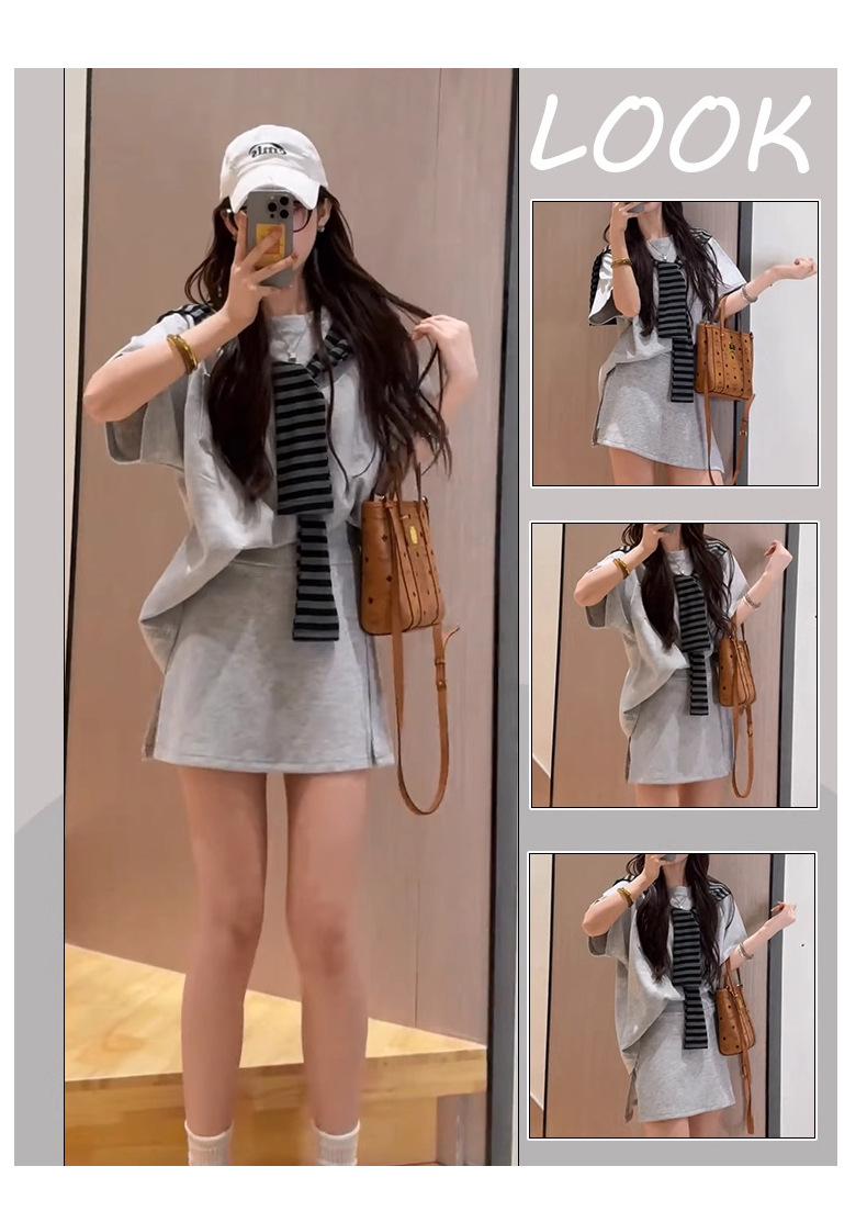 한국 스타일 대학풍 스커트 세트 여성용 2026 봄 여름 신상품 나이를 줄여주는 반팔 티셔츠 탑과 숄 투피스 세트스토어 가기