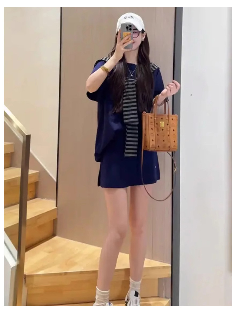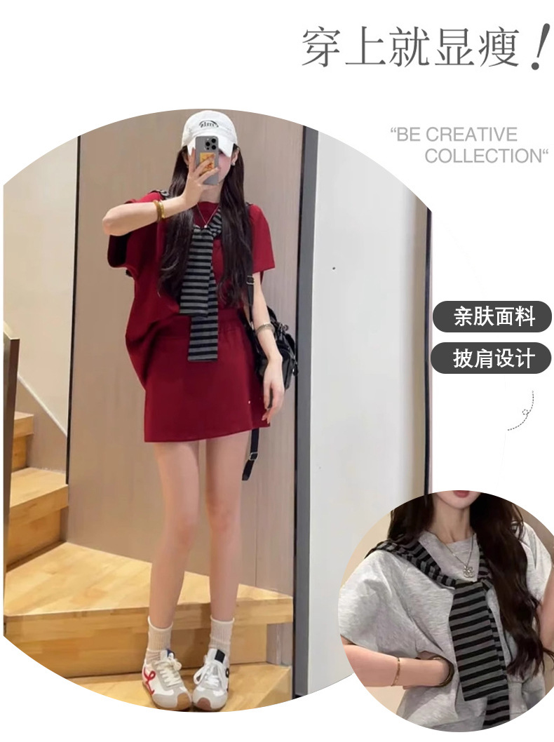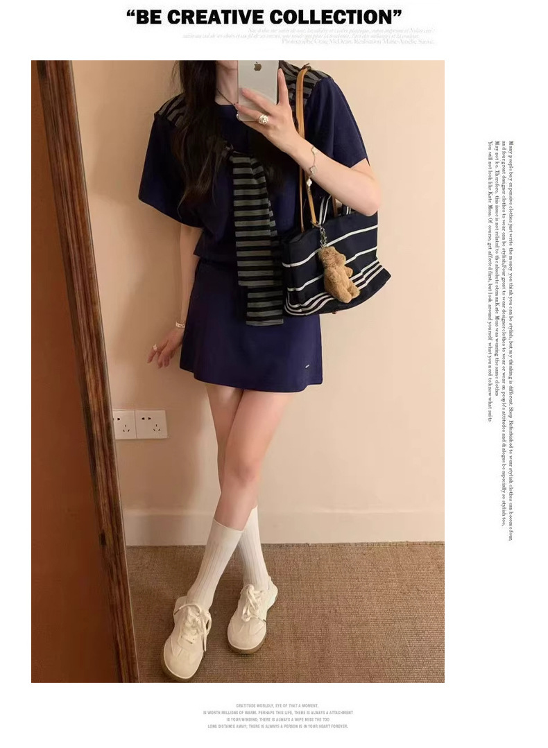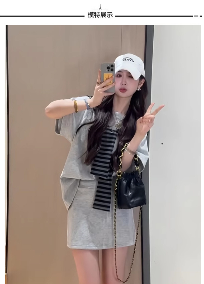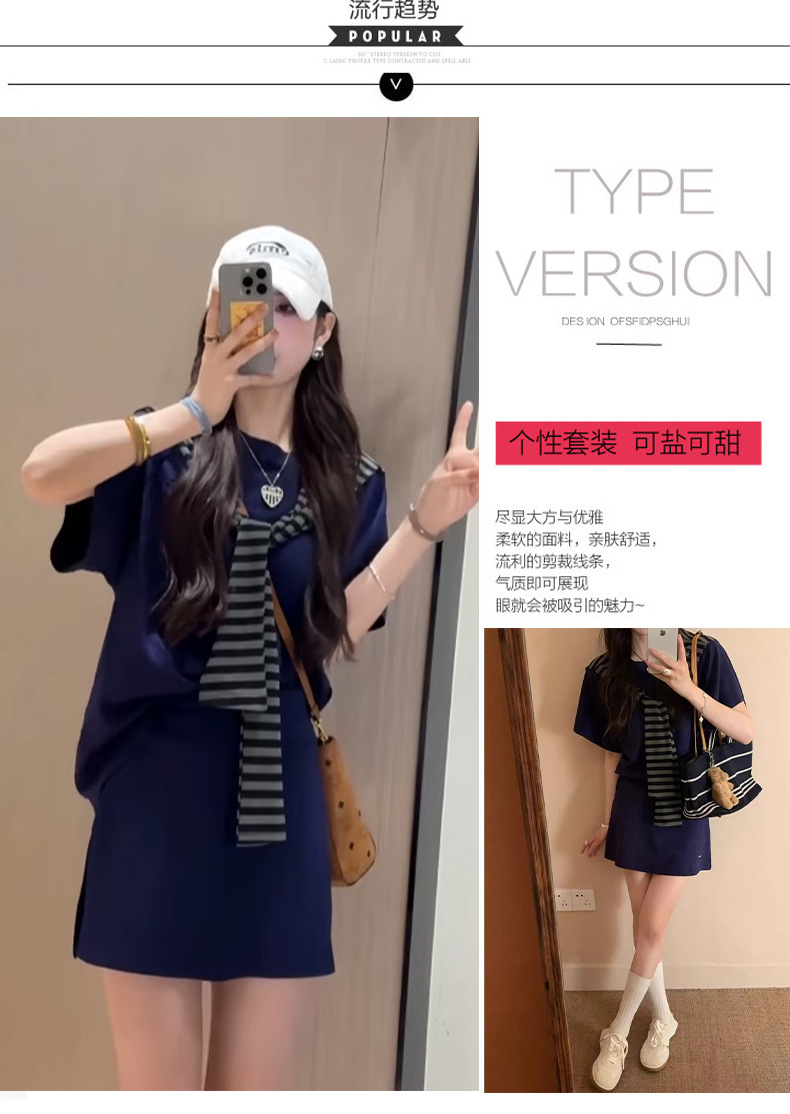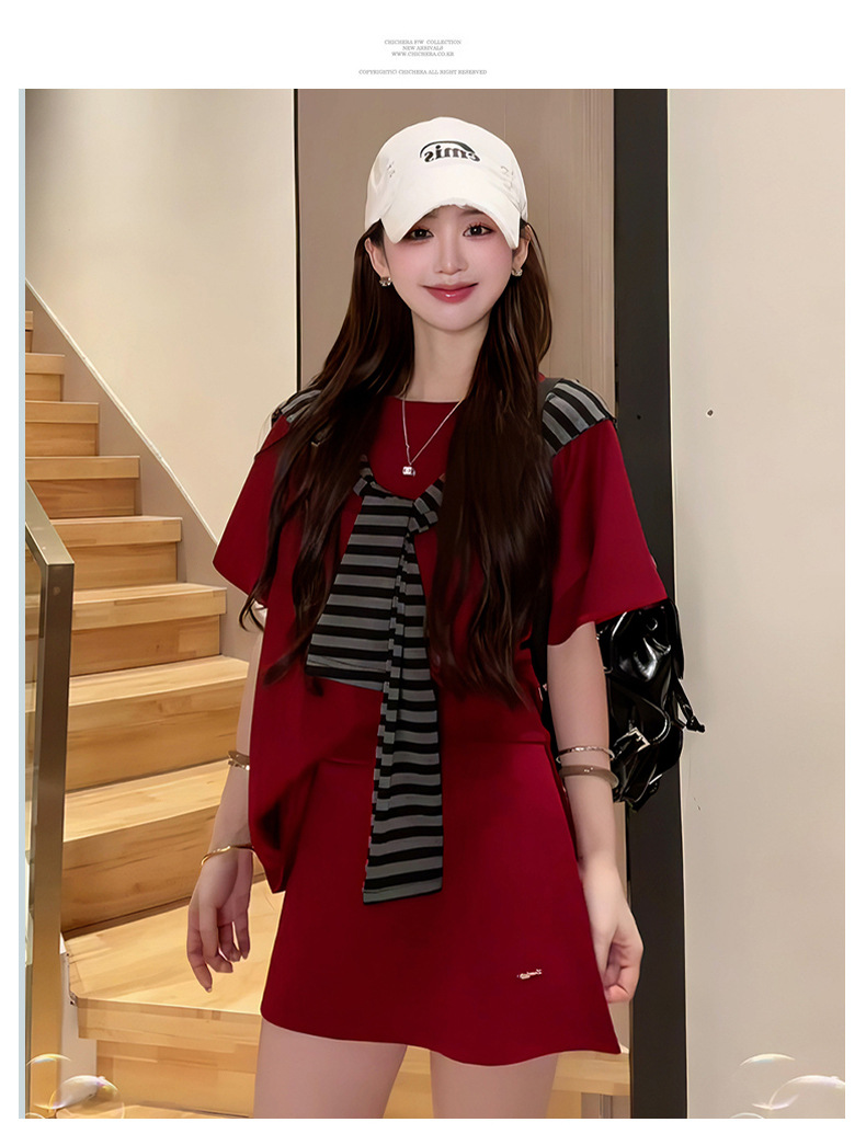 한국 스타일 대학풍 스커트 세트 여성용 2026 봄 여름 신상품 나이를 줄여주는 반팔 티셔츠 탑과 숄 투피스 세트스토어 가기
