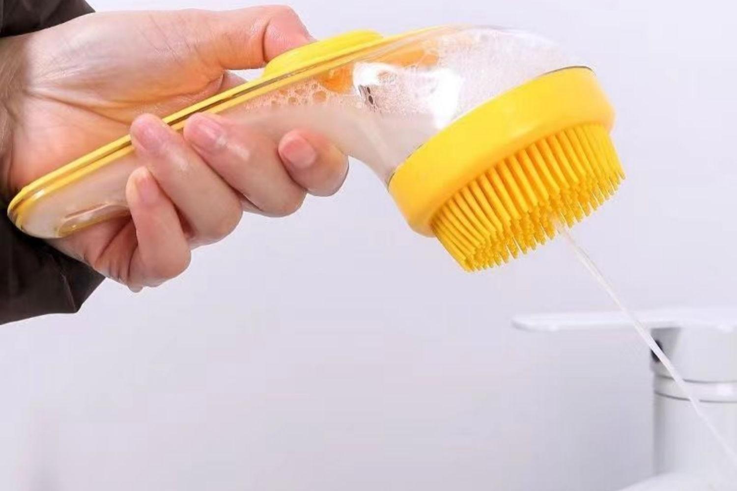 • 고양이와 강아지 목욕 브러쉬-옐로우 [업그레이드된 손잡이]