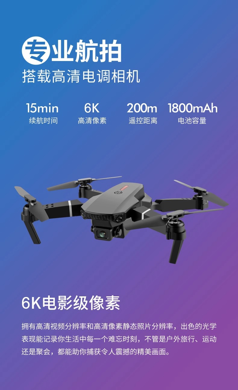 엔트리 레벨 새로운 e88 드론 8k 긴 지구력 HD 공중 미니 어린이 원격 제어 항공기 장난감 도매