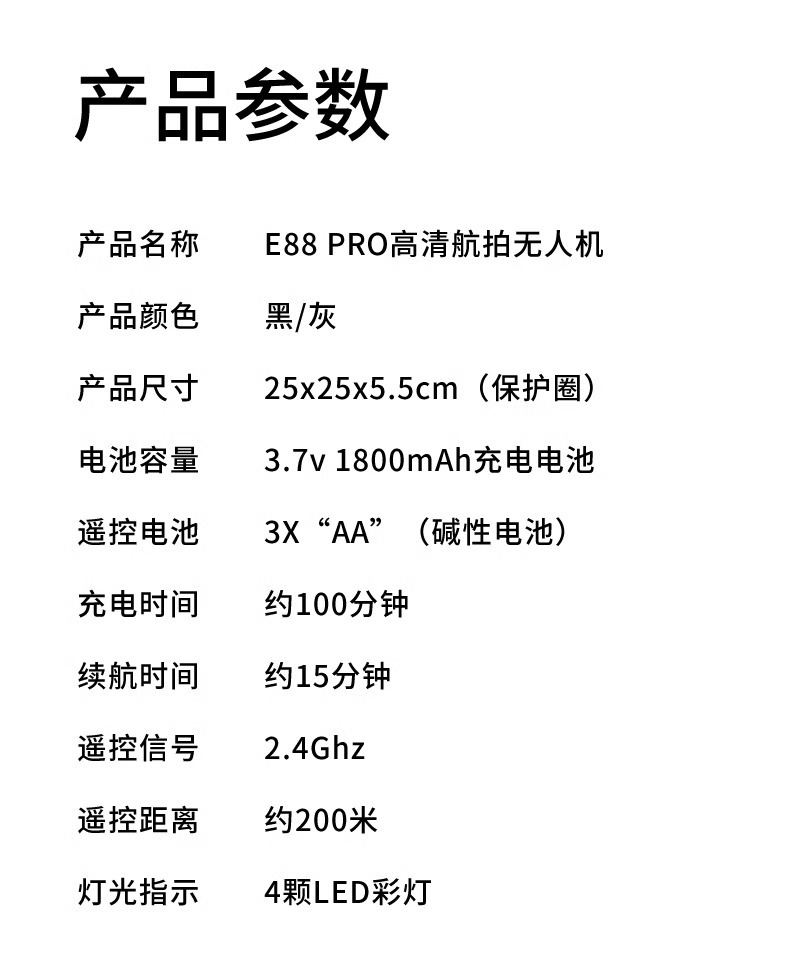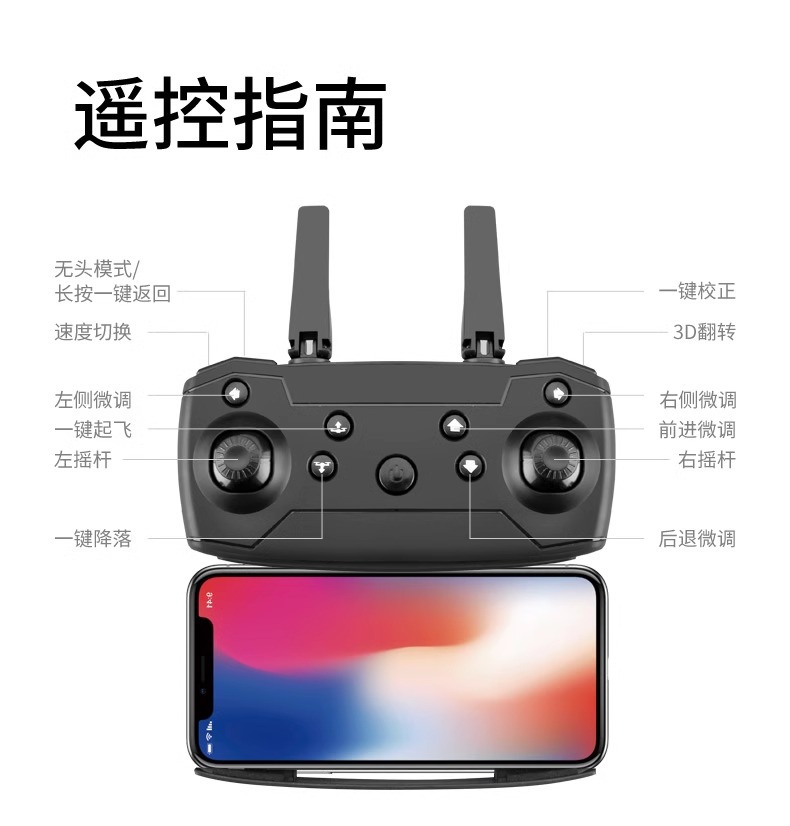 • E88 블랙 + 듀얼 카메라 + 광학 흐름 호버 + 화면 제어 버전