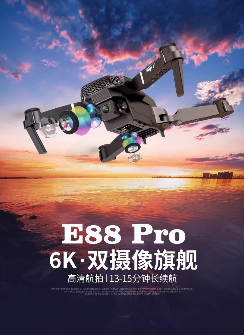 엔트리 레벨 새로운 e88 드론 8k 긴 지구력 HD 공중 미니 어린이 원격 제어 항공기 장난감 도매스토어 가기