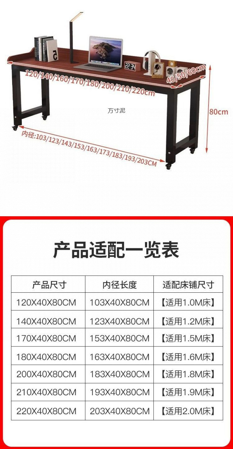 책상 침대 컴퓨터 책상 가정용 침실 끝 쓰기 책상 긴 크로스 침대 테이블 다기능 이동식 침대 옆 테이블