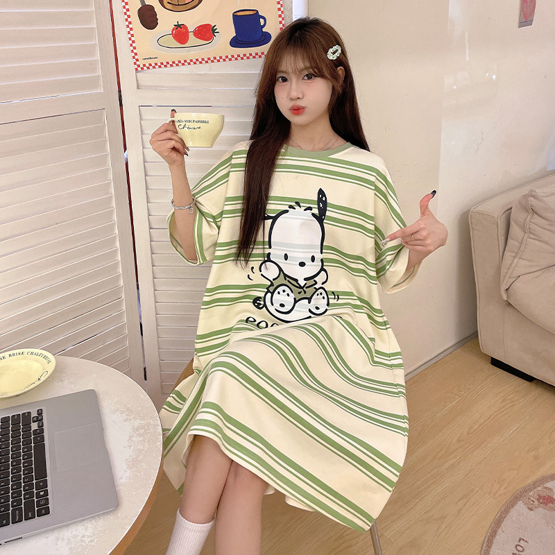 여자 여름 느슨한 플러스 사이즈 잠옷 반팔 만화 귀여운 소녀 학생 얇은 잠옷 홈 착용