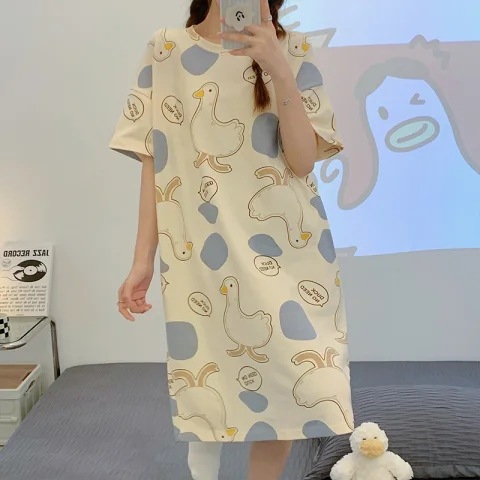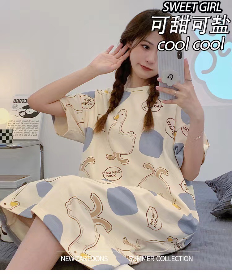 여자 여름 느슨한 플러스 사이즈 잠옷 반팔 만화 귀여운 소녀 학생 얇은 잠옷 홈 착용스토어 가기