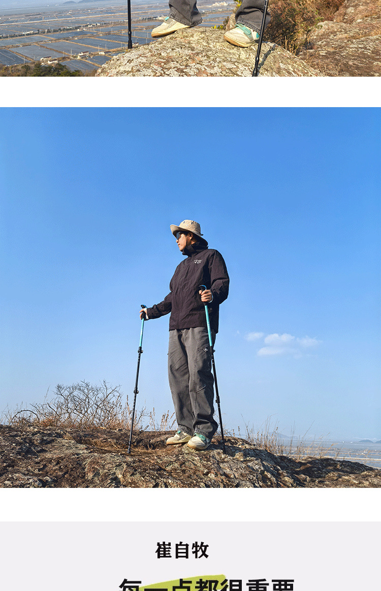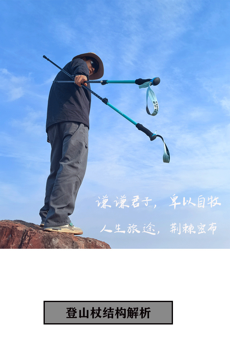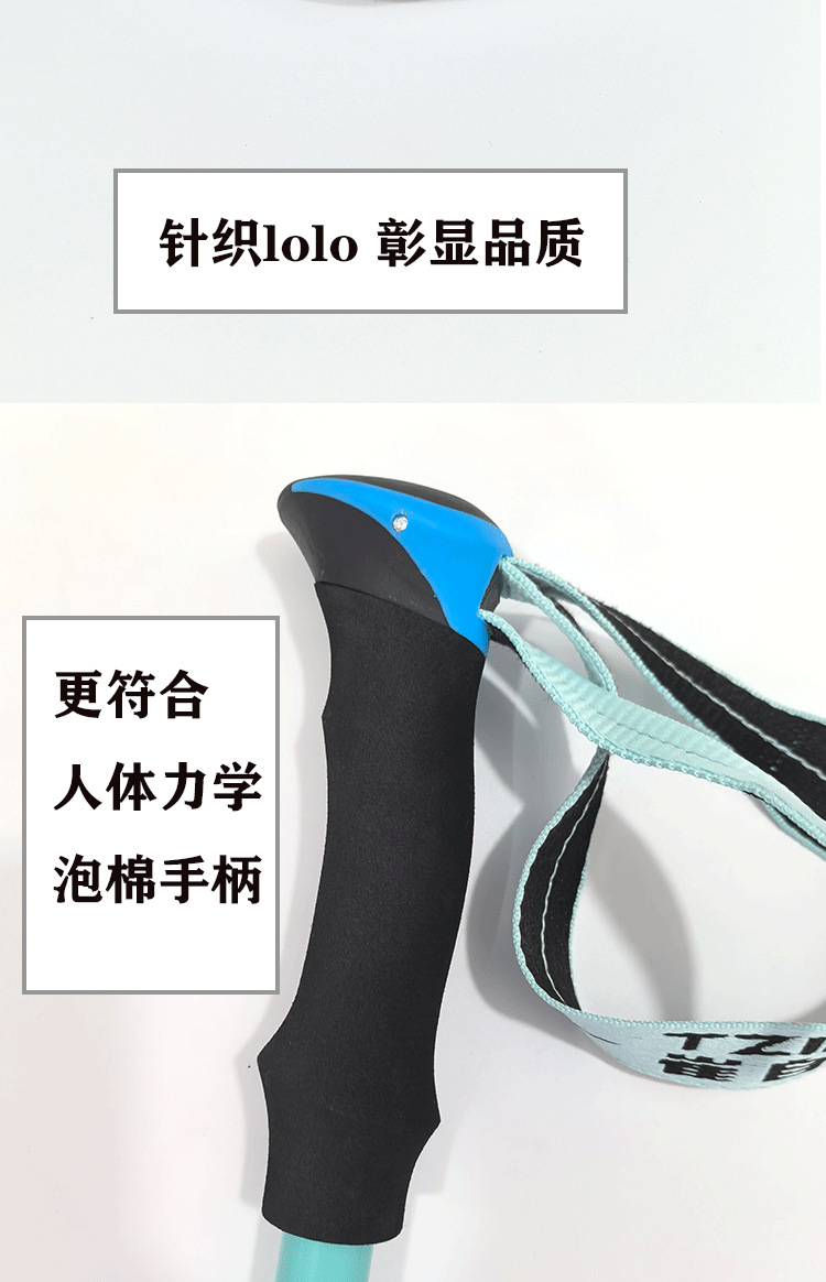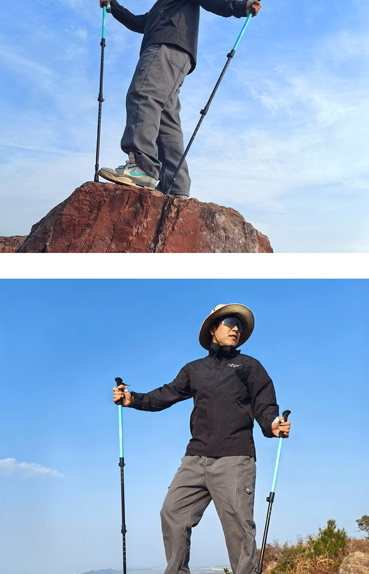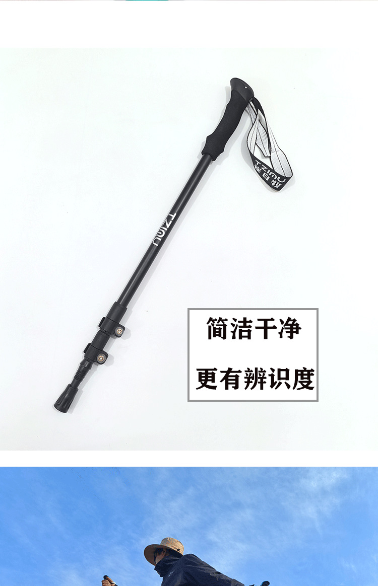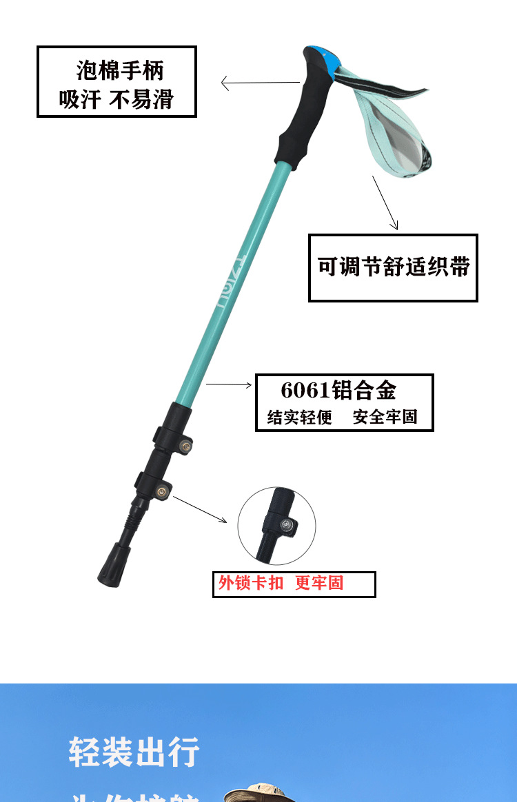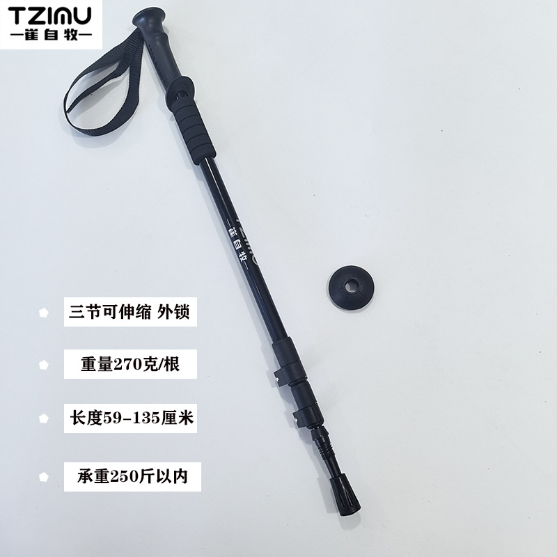 알루미늄 합금 삼단 접이식 외부 버클 하이킹 스틱, 하이킹 스틱, 튼튼하고 가벼운 스틱