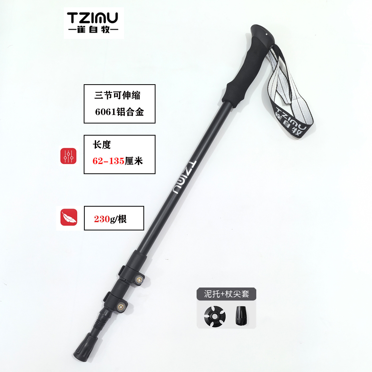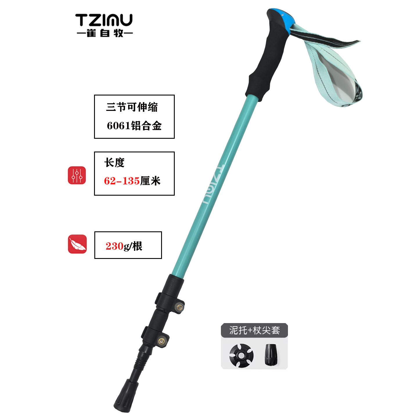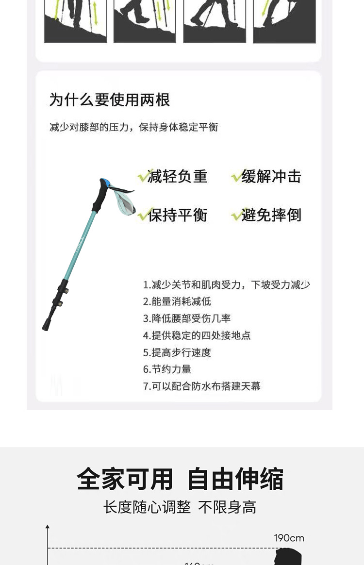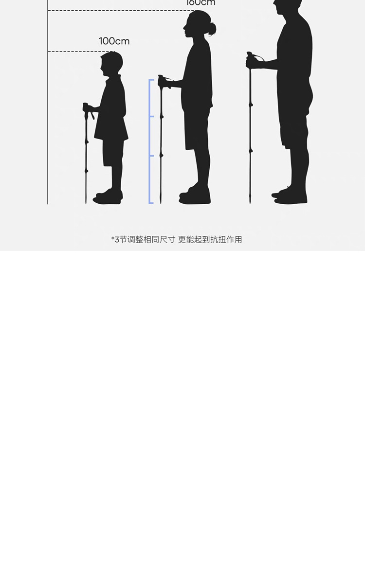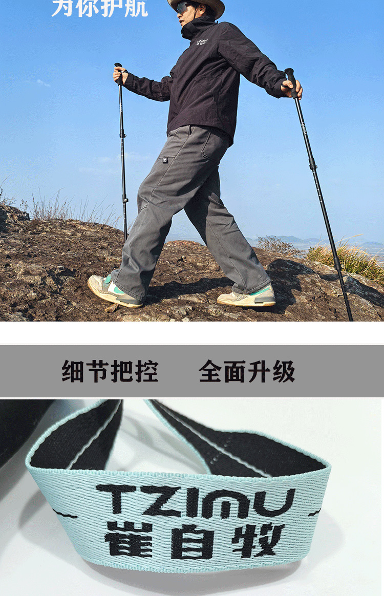 알루미늄 합금 삼단 접이식 외부 버클 하이킹 스틱, 하이킹 스틱, 튼튼하고 가벼운 스틱