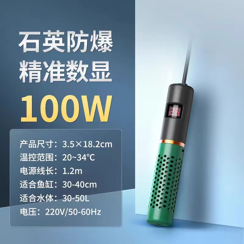 • 업그레이드된 물 및 정전 모델 100W [석영 방폭형] ┆ 외부 온도 조절 장치 ┆ 정확한 디지털 디스플레이 ┆ 40CM 수조에 적합]