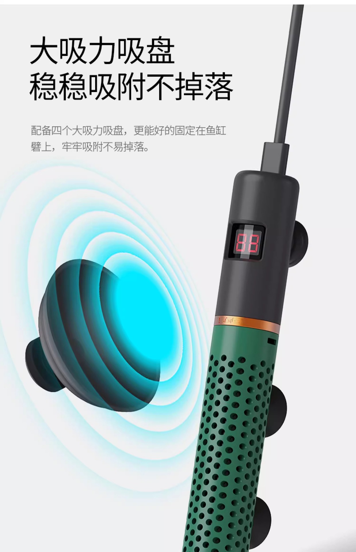 • 물과 정전이 없는 업그레이드 모델 50W [석영방폭형] ┆ 외부 온도 조절 장치 ┆ 정확한 디지털 디스플레이 ┆ 30CM 수조에 적합]